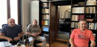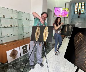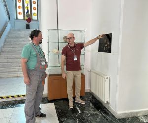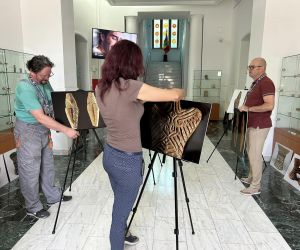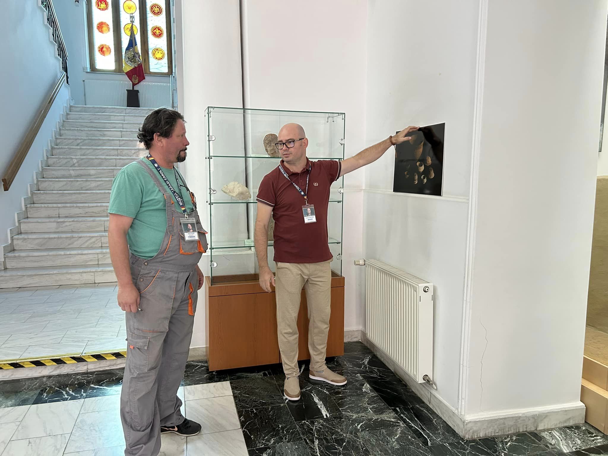 În imagini apar Elena Nicoleta Albu (educator muzeal), Viorel Stoian (șef secție) și Sorin Filoti (restaurator).