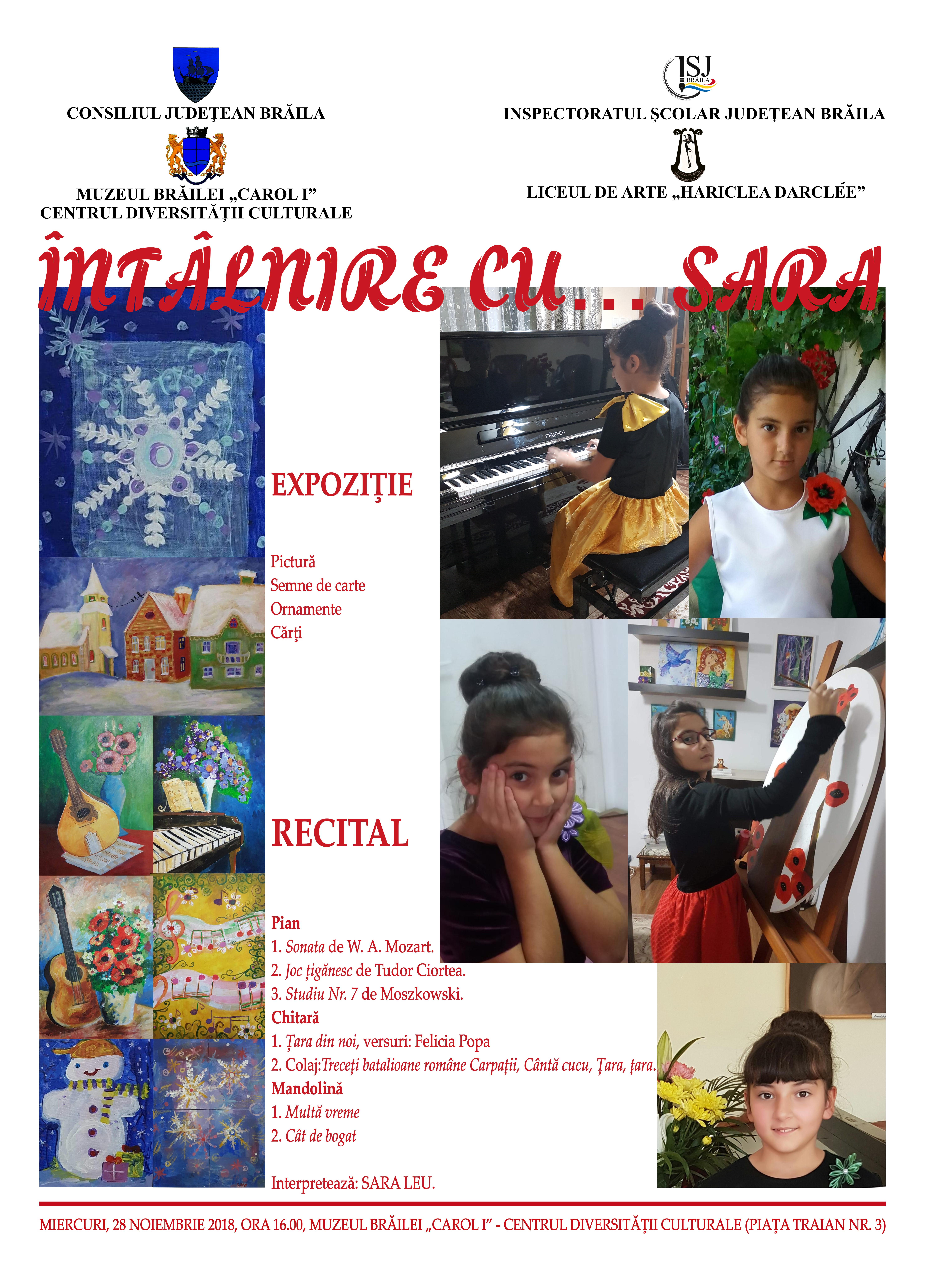 „ÎNTÂLNIRE CU SARA”. Vernisaj expoziţie temporară şi Recital - la pian, chitară şi mandolină - susţinut de Sara Leu, la Muzeul Brăilei „Carol I” - Centrul Diversităţii Culturale
