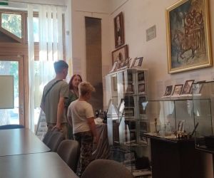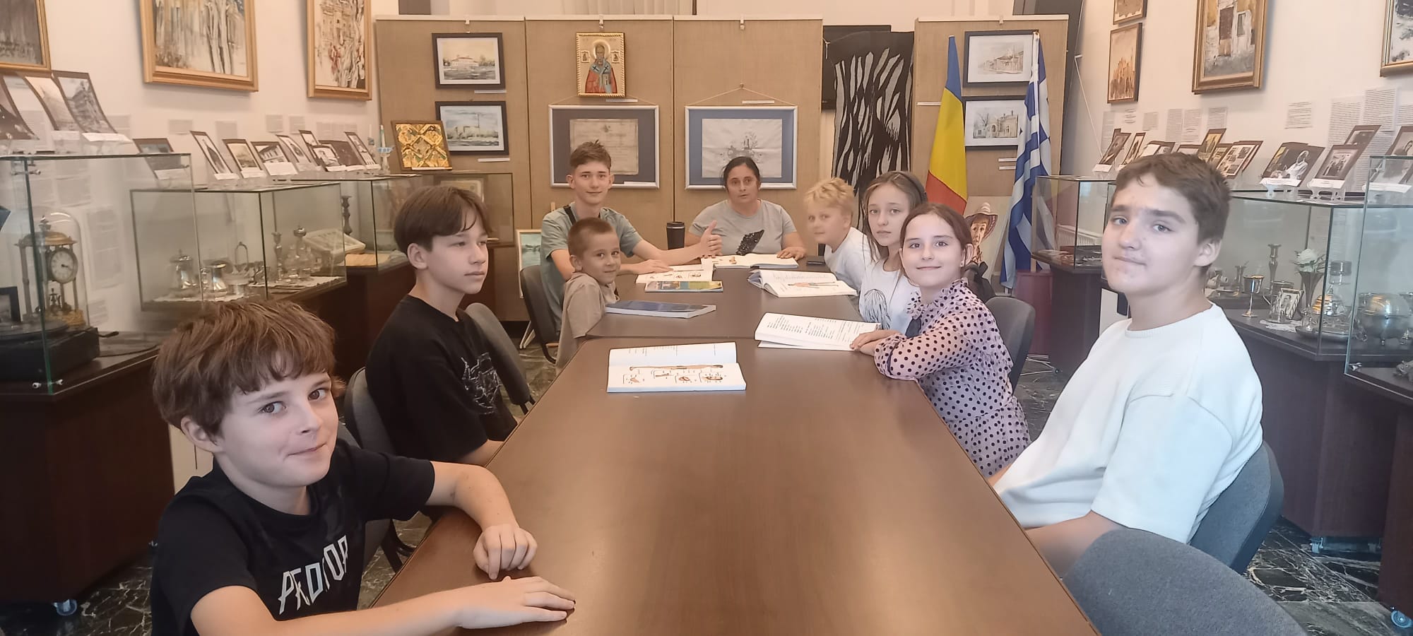 Pentru cursanții noi, Camelia Hristian, șef Serviciul Relații cu Publicul a prezentat expoziția temporară deschisă cu ocazia Zilei Naționale a Greciei: OBIECTE din sec. XIX de la Biserica Buna Vestire „Greacă” Brăila și din scrinul cu amintiri de la familii membre ale Comunității Elene Brăila: Florentina Cristina Mușat, Beatrice Dobrescu, Mihai Feraru, Veronica Macri, Jana Andreescu, Elena Salomeea Kaloxilos Moraru, Marilena Ioanid | ICOANE, PICTURĂ, TAPISERIE semnate de artiştii plastici (din Brăila, Brașov, București, Galați, Tulcea): Jana Andreescu, Gheorghe Andreescu, Marilena Ioanid, Cristina Ionescu Berechet, Irina Ionescu Berechet, Elena Salomeea Kaloxilos Moraru, Mioara Mitu, Gheorghe Mosorescu, Elena Orbocea, Iulia Pastorcici, Dennis Teodorescu, Marius Teodorescu, Traian Tsamuris | Fotoexpoziție „CĂLĂTORIE PE DUNĂRE ȘI ÎN DIASPORA GREACĂ DIN ORAȘELE DUNĂRENE, DE LA IZVOARE LA VĂRSARE” și Mini-expoziție cu lucrări de pictură semnate de Nela Constantinescu, membră a Asociației „Hristo Botev” a Bulgarilor din Brăila.