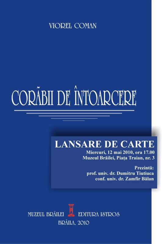 Miercuri, 12 mai 2010, ora 17.00, la sediul Muzeului Brăilei, din Piaţa Traian nr. 3, a avut loc lansarea cărţii CORĂBII DE ÎNTOARCERE de Viorel Coman (prof. Viorel Mortu).