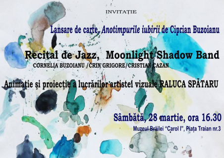 Promitem 60 de minute de spectacol autentic, cu poezie în lectura autorului, muzică jazz cu band-ul "Moonlight Shadows", compus din Cornelia Buzoianu, Crin Grigore şi Cristian Cazan, şi proiecţii video cu desenele ce ilustrează volumul, semnate de Raluca Spătaru, artist vizual.