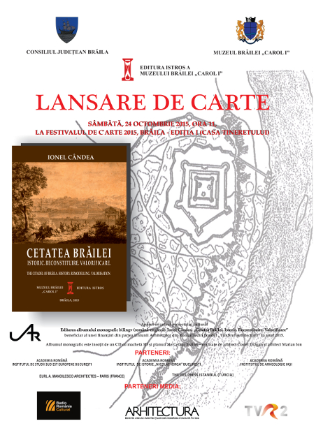 Muzeul Brăilei „Carol I” vă invită la lansarea albumului Ionel Cândea, „Cetatea Brăilei. Istoric. Reconstituire. Valorificare" (bilingv română / engleză), ce va avea loc sâmbătă, 24 octombrie 2015, ora 11.00, în cadrul primei ediţii a Festivalului de C’Arte Brăila – organizat, în perioada 21 – 24 octombrie 2015, la Casa Tineretului (Calea Calăraşilor nr. 54, Foaier Etaj 2) de Consiliul Judeţean Brăila şi Asociaţia Publicaţiilor Literare şi Editurilor din România APLER, în parteneriat cu Biblioteca Judeţeană „Panait Istrati” Brăila.