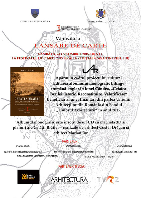 Lansarea albumului IONEL CÂNDEA, „CETATEA BRĂILEI. ISTORIC. RECONSTITUIRE. VALORIFICARE" (bilingv română / engleză) - apărut în cadrul proiectului cultural beneficiar al unei finanţări din partea Uniunii Arhitecţilor din România din FONDUL „TIMBRUL ARHITECTURII” în anul 2015 - la FESTIVALUL DE C’AR