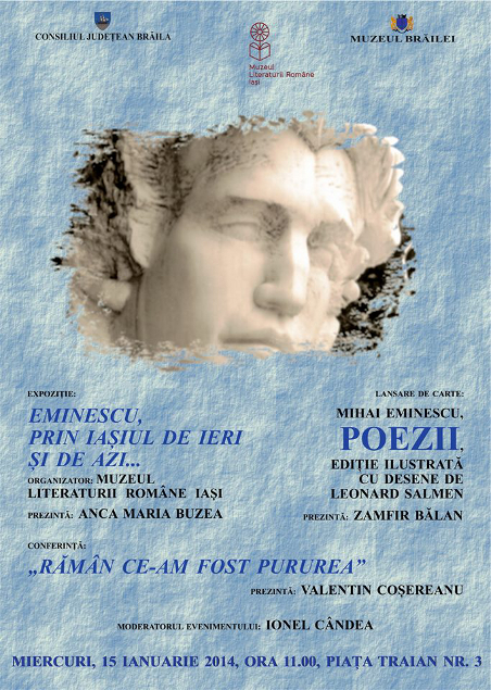 Lansare de carte: Mihai Eminescu, "Poezii" - ediţie ilustrată cu desene de Leonard Salmen. Prezintă: dr. Zamfir Bălan, director adjunct al Muzeului Brăilei.