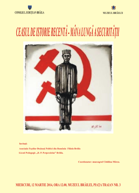 Miercuri, 12 martie 2014, ora 12.00, la sediul Muzeului Brăilei (Piaţa Traian nr. 3), va avea loc o masă rotundă cu tema „Ceasul de istorie recentă - Mâna lungă a Securităţii”. Vor fi abordate discuţii privind „Rolul pe care l-a jucat Securitatea în perioada 1948-1989” şi „Spioni şi conspiraţii”.