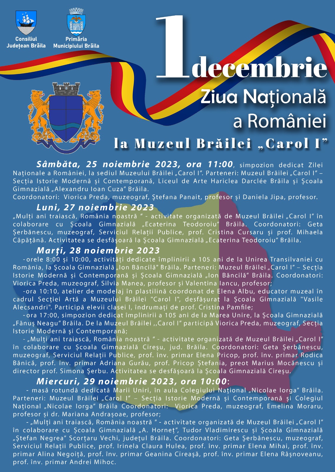 Miercuri, 29 noiembrie 2023, la Școala Gimnazială Scorțaru Vechi s-a desfăsurat activitatea „Mulți ani trăiască, România noastră!", dedicată Zilei Naționale a României.
