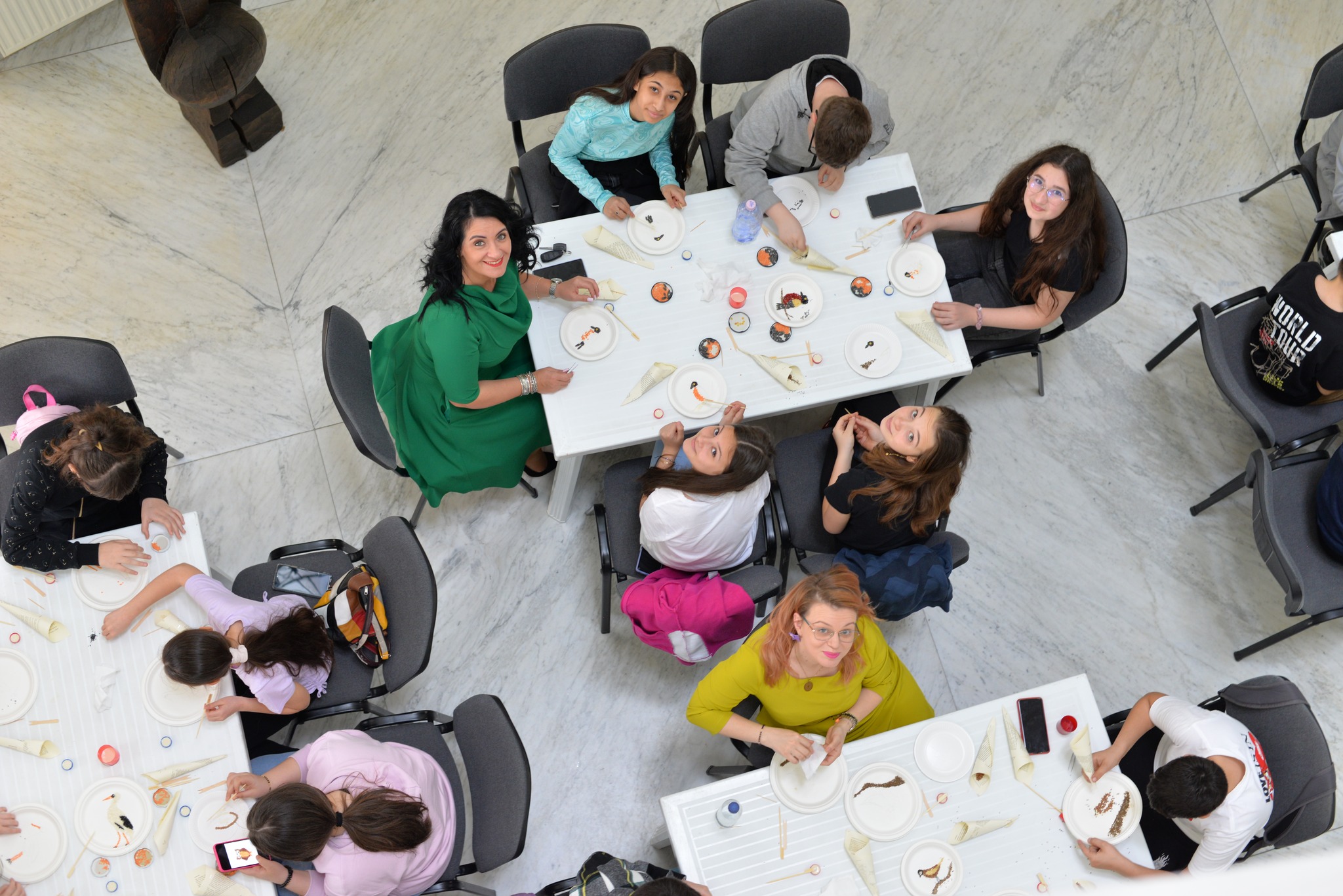 Cât despre atelierul Seed Art, ne-au fost testate răbdarea și îndemânarea, reușind să refacem bob cu bob siluetele: bufniței, berzei, rândunicii, cintezei și mugurarului.