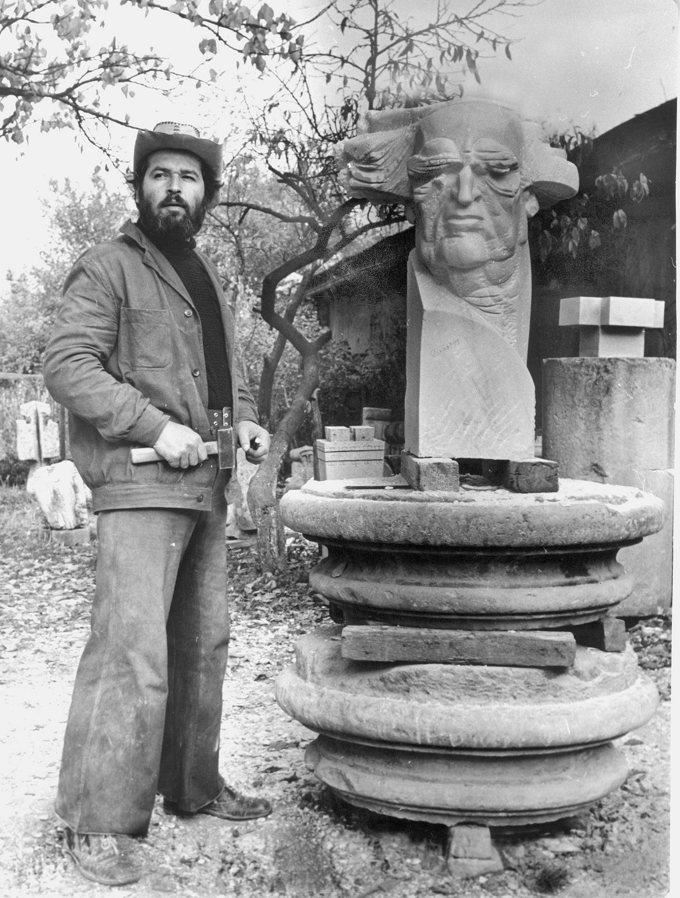 Nicăpetre finisând portretul lui Perpessicius - marmură, București, 1978.