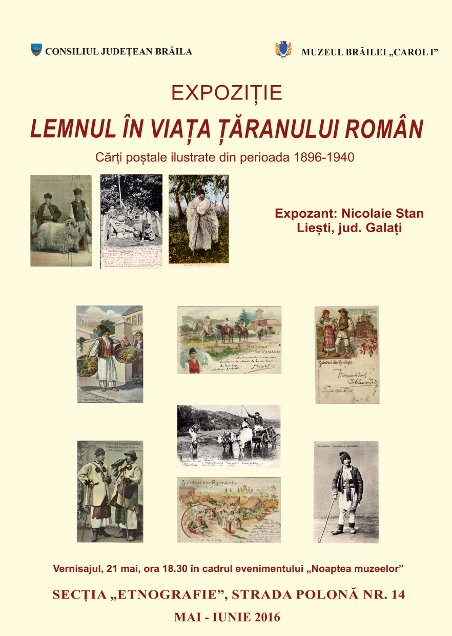 Vernisajul expoziției temporare de cărți poștale ilustrate (1896 - 1940): „Lemnul în viața țăranului român” are loc sâmbătă, 21 mai 2016, ora 18.30, în cadrul evenimentului "Noaptea Muzeelor". Expozant: Nicolaie Stan, Liești, jud. Galați.