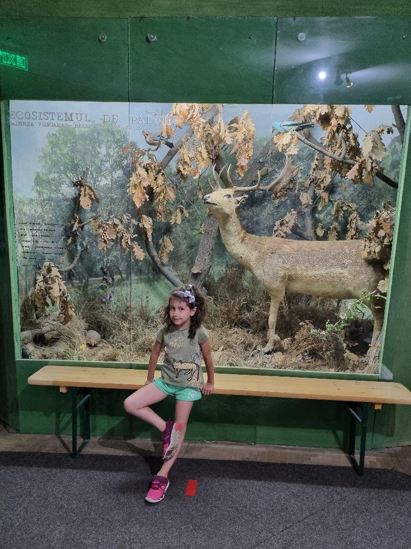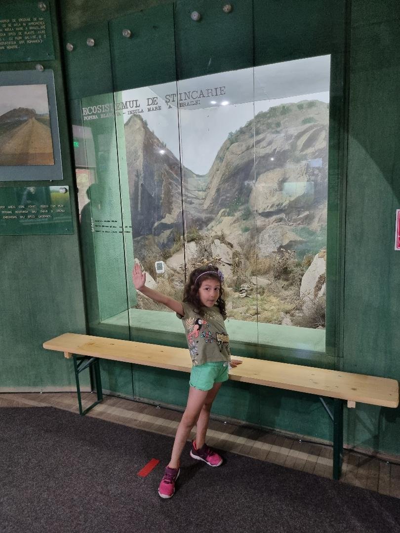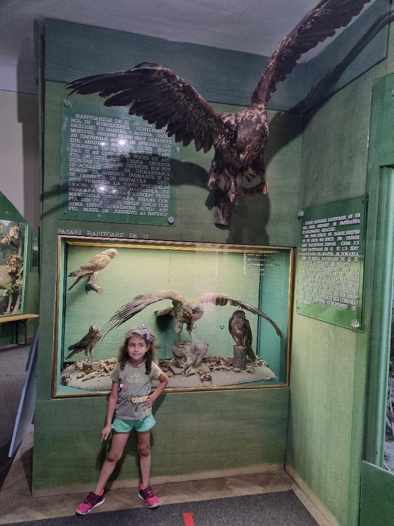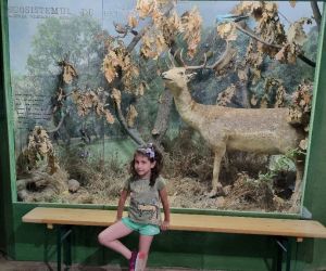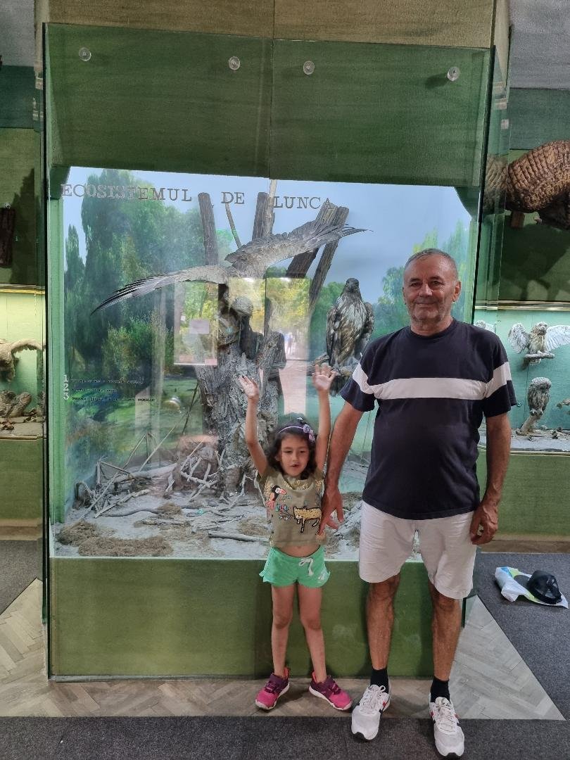 O vizitatoare drăgălașă, pasionată de natură, plante și animale, împreună cu bunicul ei, la Muzeul Brăilei „Carol I" - Secția Științele Naturii.