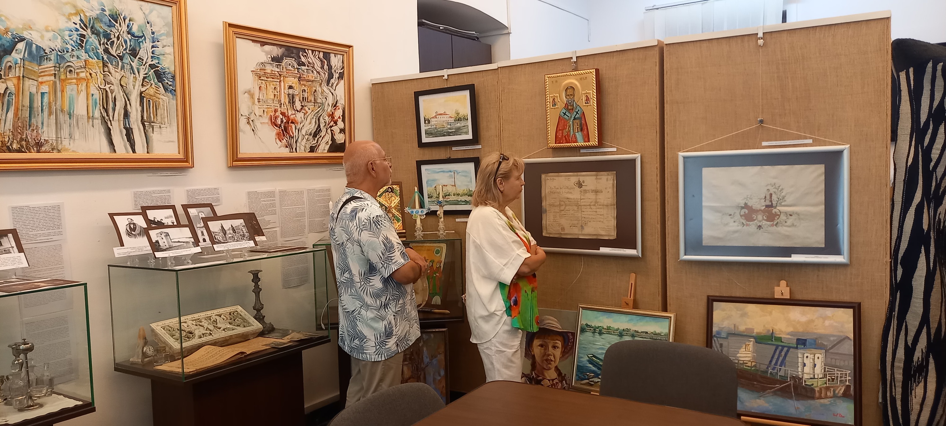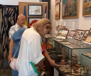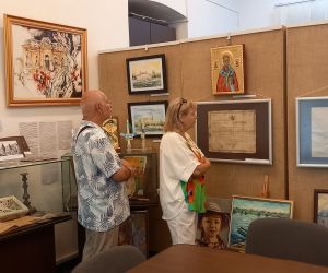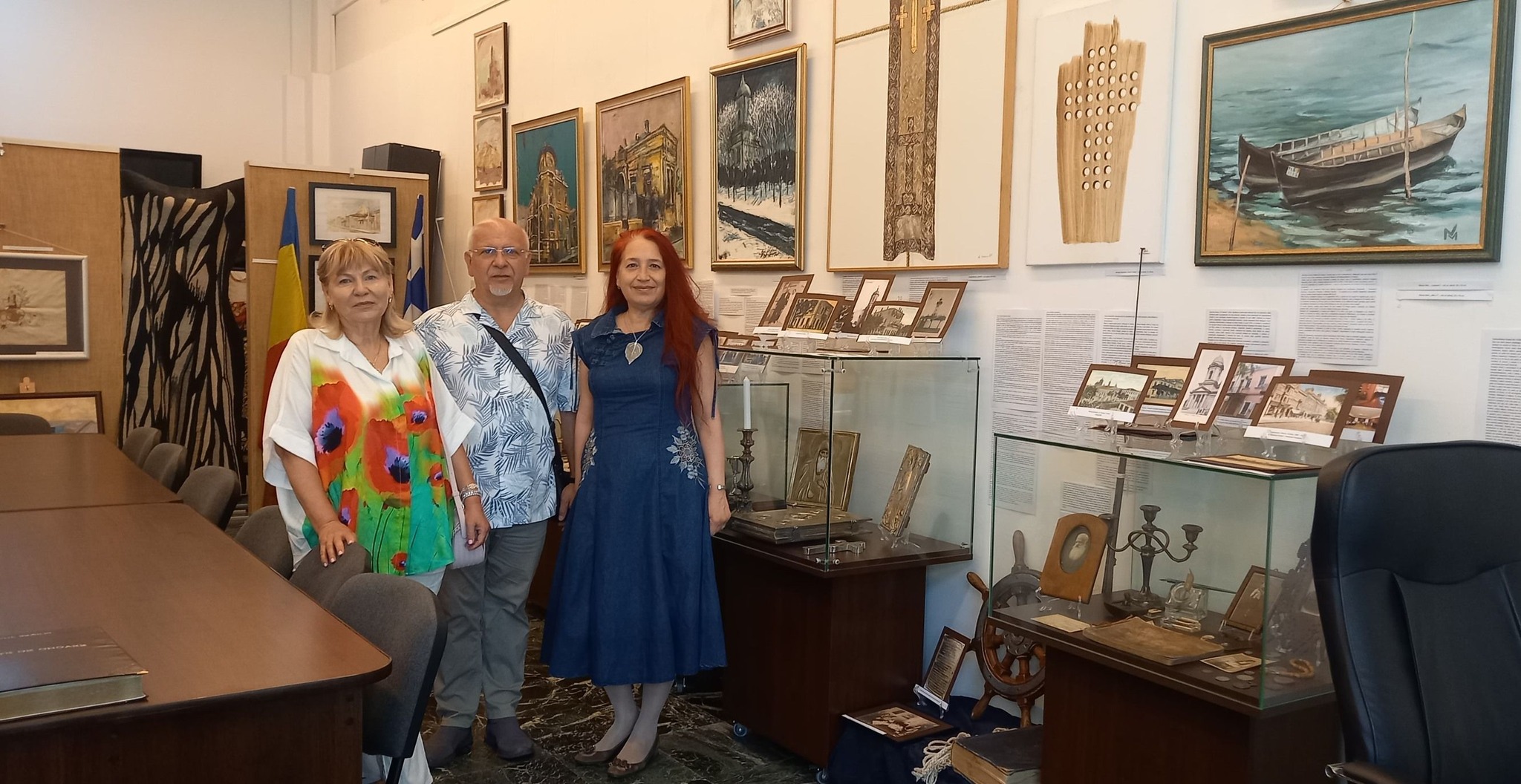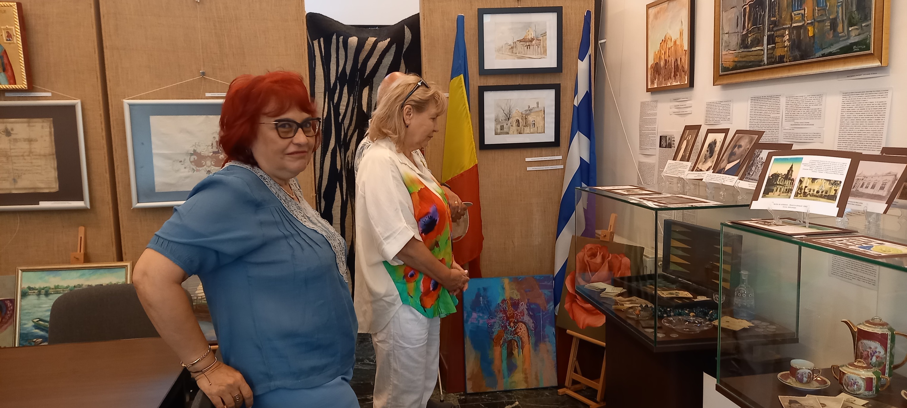 Beatrice Dobrescu, membră a Comunității Elene Brăila a prezentat obiectele familiei sale din expoziția temporară deschisă cu ocazia Zilei Naționale a Greciei: OBIECTE din sec. XIX de la Biserica Buna Vestire „Greacă” Brăila și din scrinul cu amintiri de la familii membre ale Comunității Elene Brăila: Florentina Cristina Mușat, Beatrice Dobrescu, Mihai Feraru, Veronica Macri, Jana Andreescu, Elena Salomeea Kaloxilos Moraru, Marilena Ioanid | ICOANE, PICTURĂ, TAPISERIE semnate de artiştii plastici (din Brăila, Brașov, București, Galați, Tulcea): Jana Andreescu, Gheorghe Andreescu, Marilena Ioanid, Cristina Ionescu Berechet, Irina Ionescu Berechet, Elena Salomeea Kaloxilos Moraru, Mioara Mitu, Gheorghe Mosorescu, Elena Orbocea, Iulia Pastorcici, Dennis Teodorescu, Marius Teodorescu, Traian Tsamuris | Fotoexpoziție „CĂLĂTORIE PE DUNĂRE ȘI ÎN DIASPORA GREACĂ DIN ORAȘELE DUNĂRENE, DE LA IZVOARE LA VĂRSARE” | Mini-expoziție cu lucrări de pictură semnate de Nela Constantinescu, membră a Asociației „Hristo Botev” a Bulgarilor din Brăila și Paul Petrov, membru al Comunității Rușilor Lipoveni Brăila.