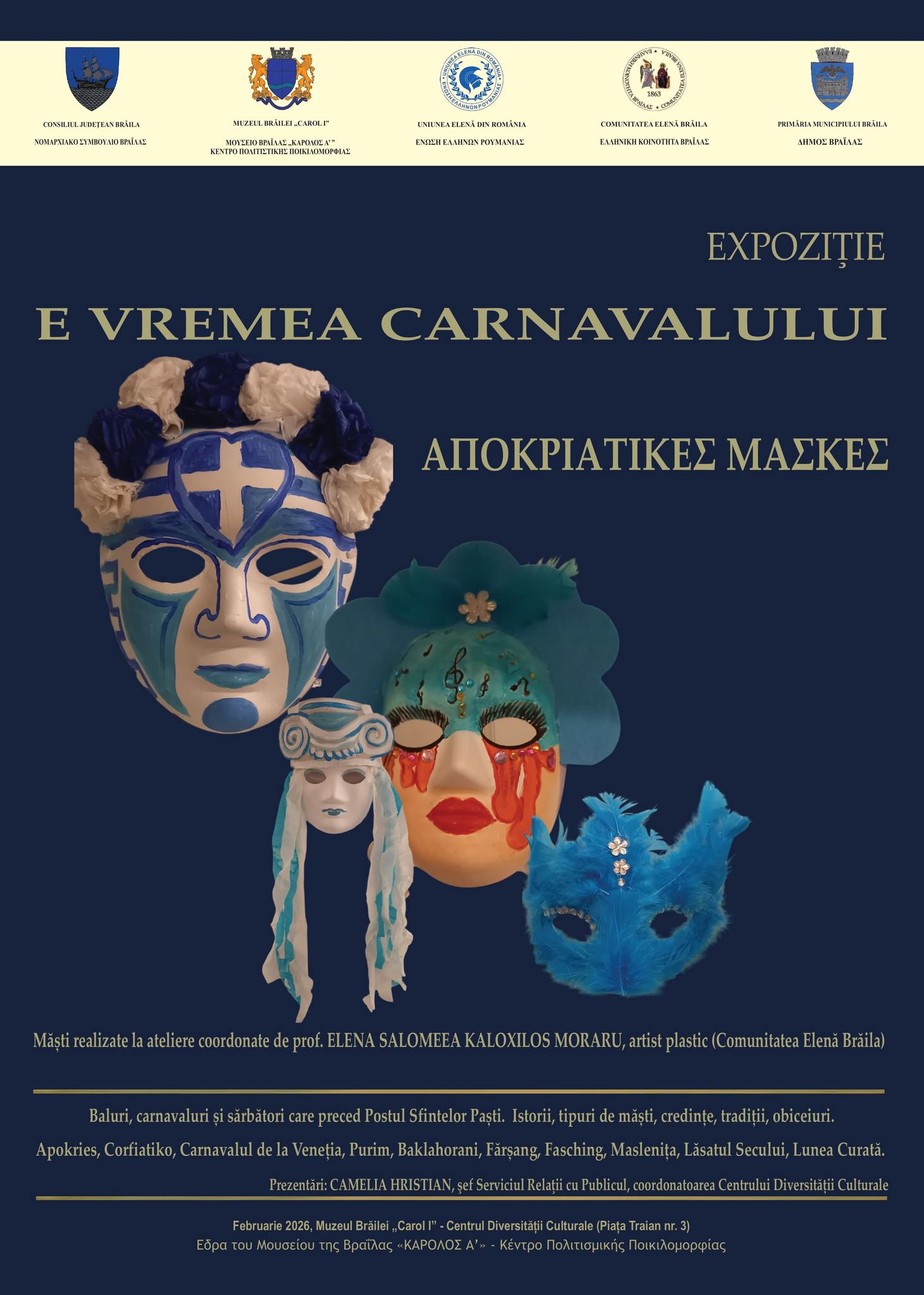 În expoziția temporară „E vremea Carnavalului”, deschisă la la Muzeul Brăilei „Carol I” - Centrul Diversității Culturale, sunt expuse măști realizate la ateliere coordonate de prof. Elena Salomeea Kaloxilos Moraru, artist plastic (Comunitatea Elenă Brăila).