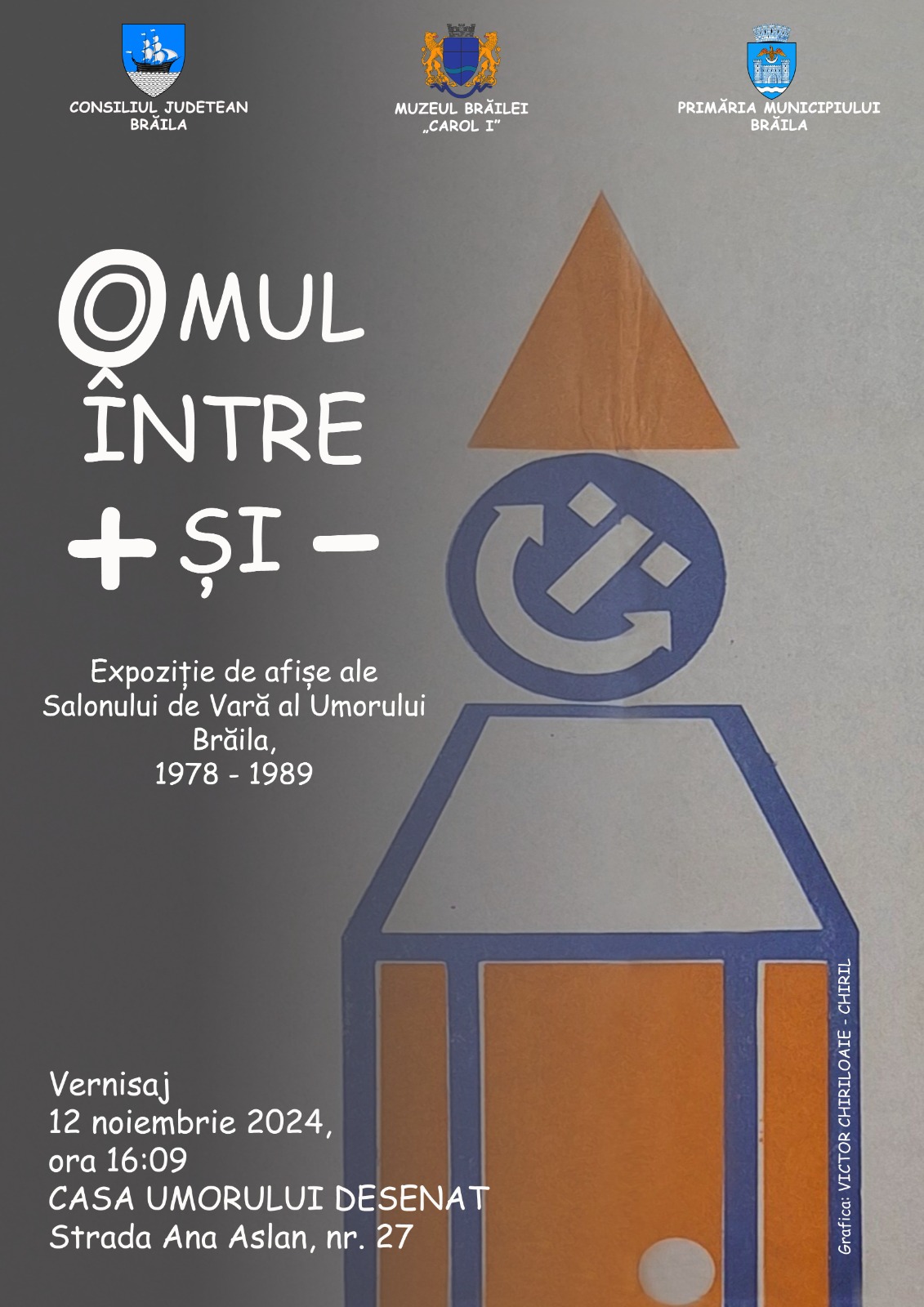 „OMUL ÎNTRE + ȘI =”. Expoziție de afișe ale Salonului de Vară al Umorului, Brăila, 1978 - 1989, la Muzeul Brăilei „Carol I” - Casa Umorului Desenat
