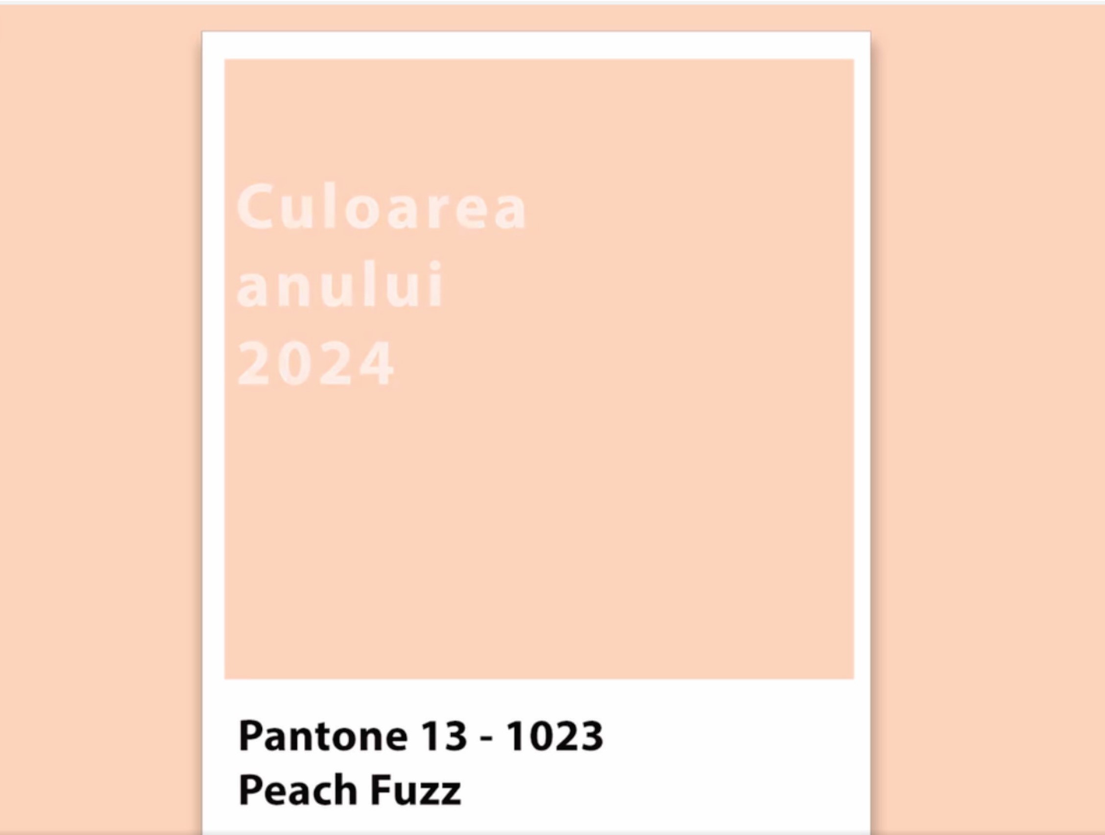 Culoare delicată, radiantă, Peach Fuzz amintește de voluptatea piersicilor. Luminoasă, fără dramatism, ușor nostalgică, aceasta îndeamnă la compasiune și empatie.