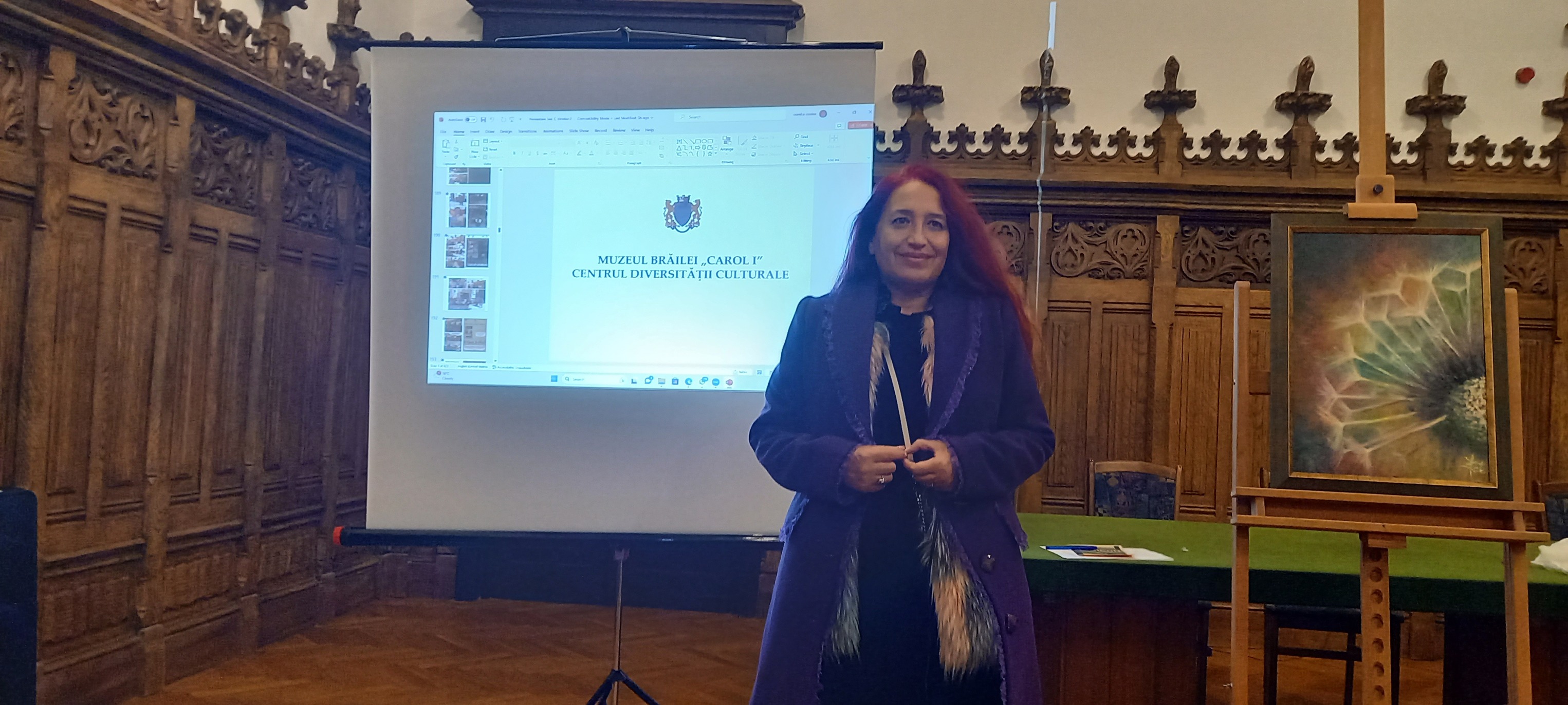 Camelia Hristian, șef Serviciul Relații Publice a susținut comunicarea „Reconstituirea, salvarea unor fragmente din imaginea Brăilei multiculturale de altădată și promovarea mozaicului etnic și a Muzeului Brăilei „Carol I", prin proiecte culturale și educaționale inedite, pentru diferite categorii de public țintă, derulate de Centrul Diversității Culturale",