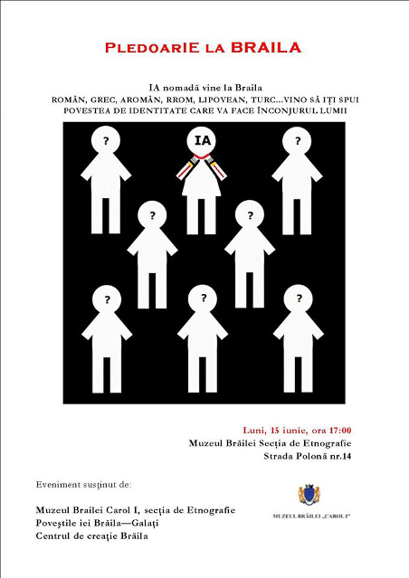 Vă aştept luni 15 iunie, la ora 17:00 la Muzeul Brăilei "Carol I" - Secţia Etnografie, din strada Polonă nr. 14, să deschidem drumul iei nomade. Vom vizita muzeul iar la sfârşit vă invit la o discuţie liberă pe proiecte comunitare.