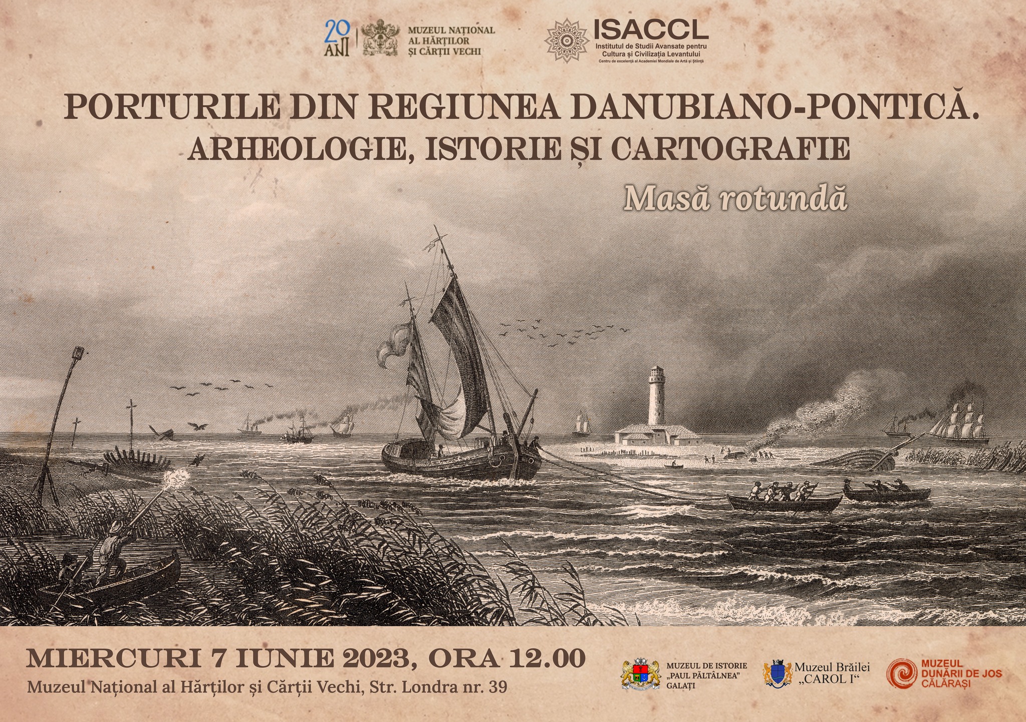 Institutul de Studii Avansate pentru Cultura și Civilizația Levantului în parteneriat cu Muzeul Național al Hărților și Cărții Vechi, Muzeul de Istorie „Paul Păltănea” din Galați, Muzeul Brăilei „Carol I" și Muzeul Dunării de Jos din Călărași au organizat pe 7 iunie 2023, la sediul Muzeului Hărților, masa rotundă „PORTURILE DIN REGIUNEA DANUBIANO-PONTICĂ. ARHEOLOGIE, ISTORIE ȘI CARTOGRAFIE", înscrisă în proiectul #ISACCL „Orașe-porturi în regiunea danubiano-pontică".