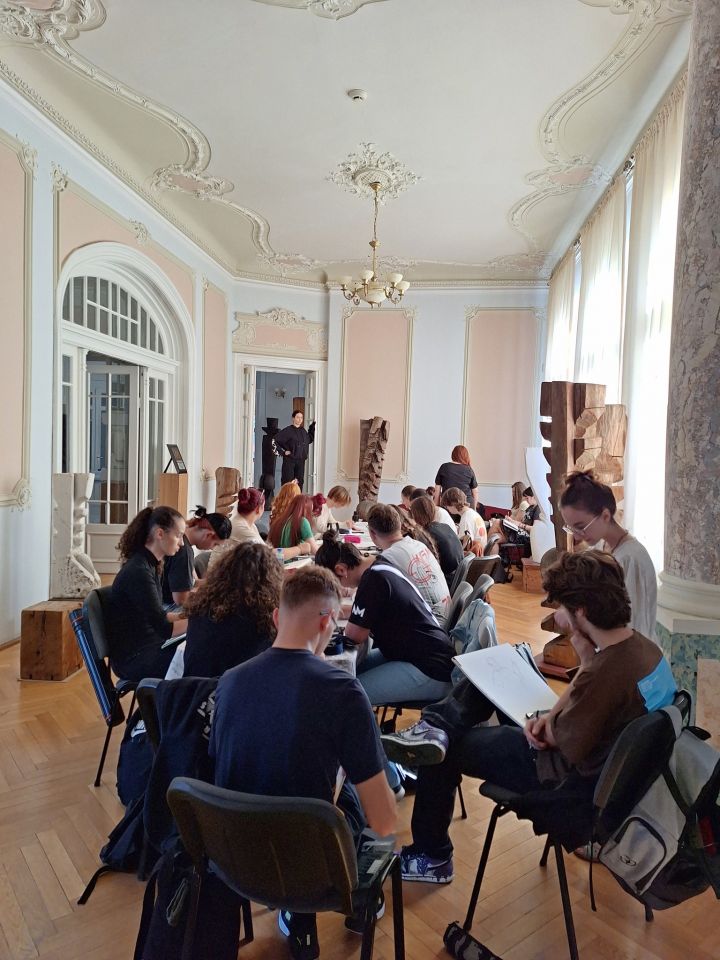 Cât timp am panotat expoziția lor, al cărei vernisaj va avea loc mâine, elevi ai Liceul de Arte „Hariclea Darclee" Brăila, îndrumați de prof. Alexandra Dinu și prof. Ioana Grigore, au desenat crochiuri în una din încăperile Centrul Cultural Nicăpetre, un mod inspirat de a desfășura cursurile.