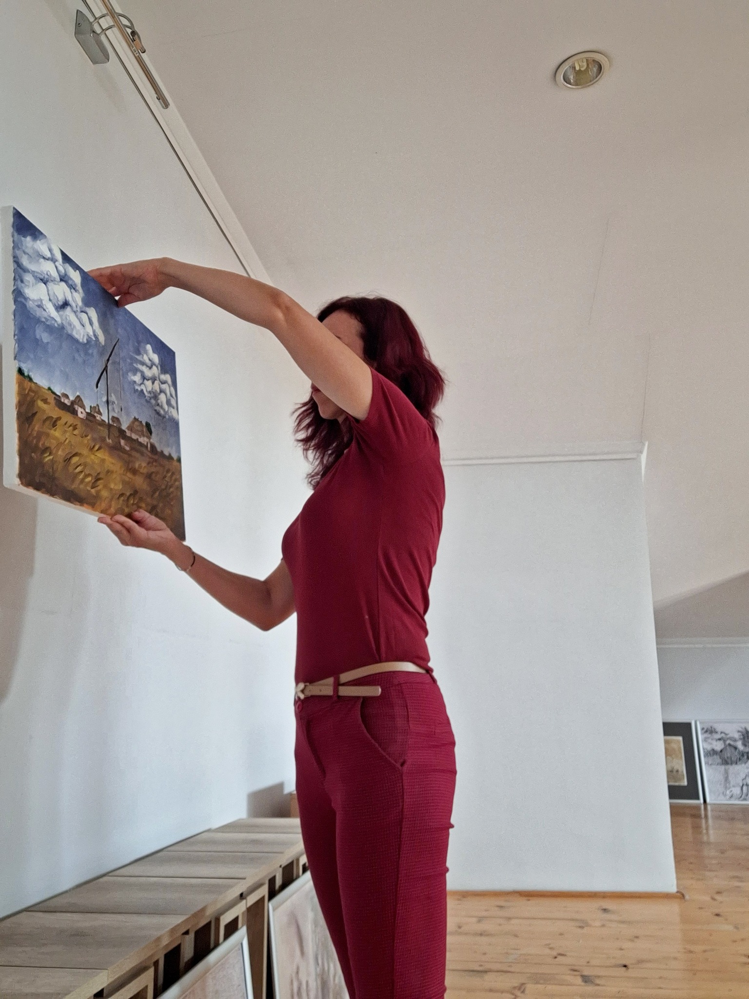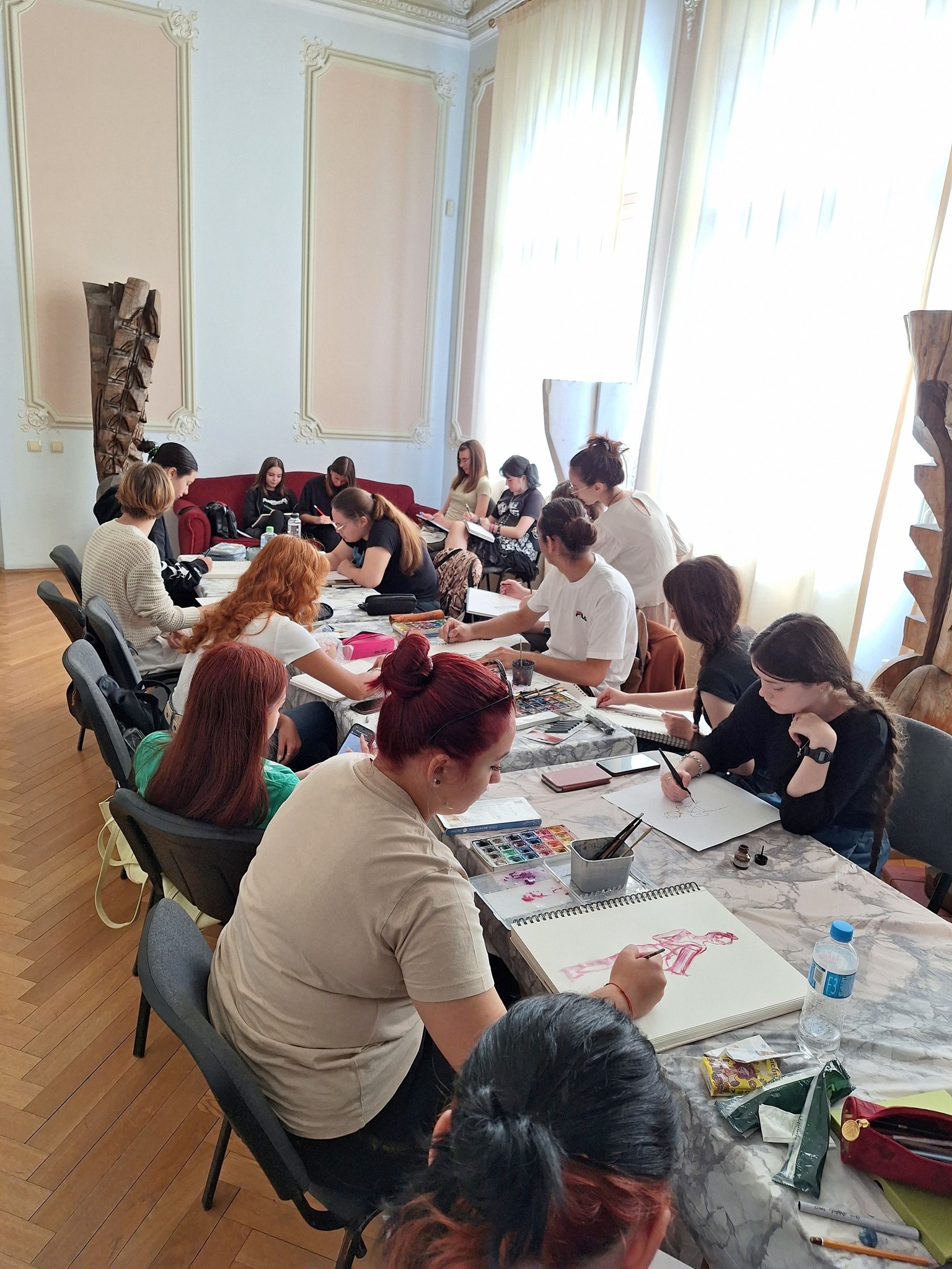 Pregătirea expoziției cu lucrări ale elevilor inspirate din cartea „RUBLA, LOCUL FĂRĂ UMBRĂ” a scriitoarei Mariana Gorczyca, la Muzeul Brăilei „Carol I" - Centrul Cultural Nicăpetre