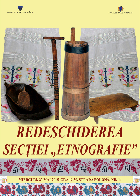 Muzeul Brăilei „Carol I” vă invită miercuri, 27 mai 2015, ora 12.30, la redeschiderea Secției „Etnografie”, în imobilul situat pe strada Polonă nr. 14.