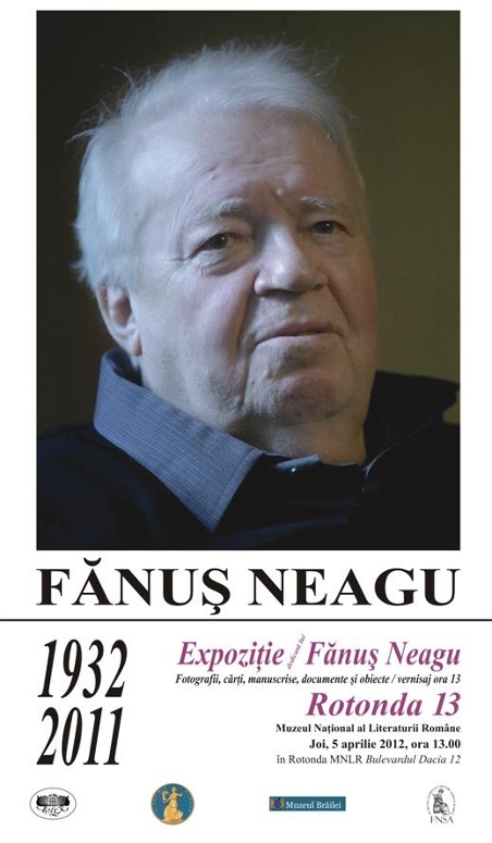 Joi, 5 aprilie 2012, ora 13.00, la Muzeul Naţional al Literaturii Române Bucureşti a avut loc o omagiere a regretatului scriitor brăilean Fănuş Neagu: „Rotonda 13: Fănuş Neagu – 80”. Cu acest prilej au avut loc: vernisajul unei expoziţii dedicate lui Fănuş Neagu: fotografii, cărţi, manuscrise, documente şi obiecte, precum şi o evocare. La eveniment au fost prezenţi şi brăilenii: dr. Zamfir Bălan, director adjunct al Muzeului Brăilei, profesorul Viorel Mortu şi scriitorul Vasile Datcu.