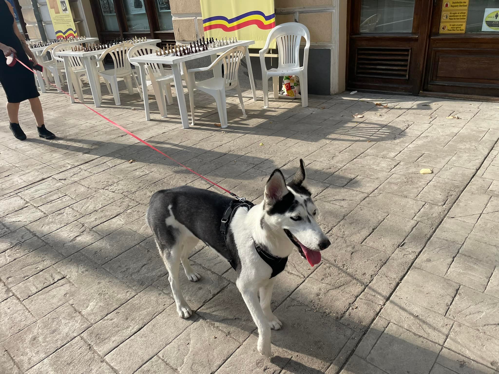 Șah în aer liber cu Iulian Preda, președintele Clubului Sportiv „Micul Prinț” Brăila, în fața Muzeului Brăilei „Carol I” - Centrul Diversității Culturale.