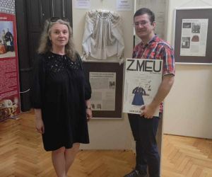 În imaginea de la Secția Etnografie: dr. Brîndușa Ilie, muzeograf, alături de Gabriel Lâlă, ghid Brăila City Tour, în expoziția itinerantă „Dincolo de poveste. Graiul straielor moștenite", vernisată astăzi.