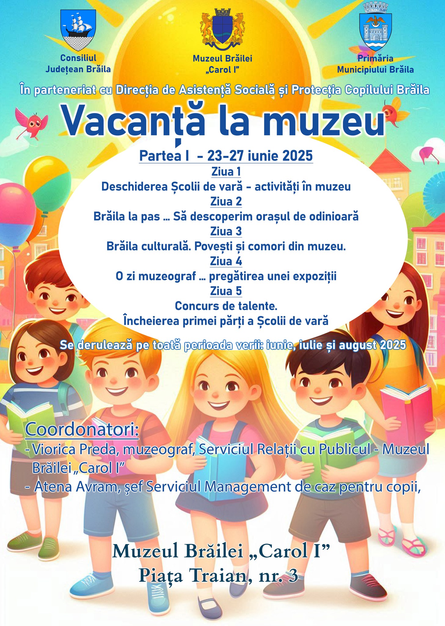 Muzeul Brăilei „Carol I” în parteneriat cu Direcția de Asistență Socială și Protecția Copilului Brăila organizează Școala de vară „VACANȚĂ LA MUZEU”.