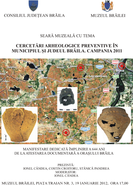 Vor fi prezentate cele mai importante rezultate ale cercetărilor arheologice desfăşurate în municipiul şi judeţul Brăila, în anul 2011.