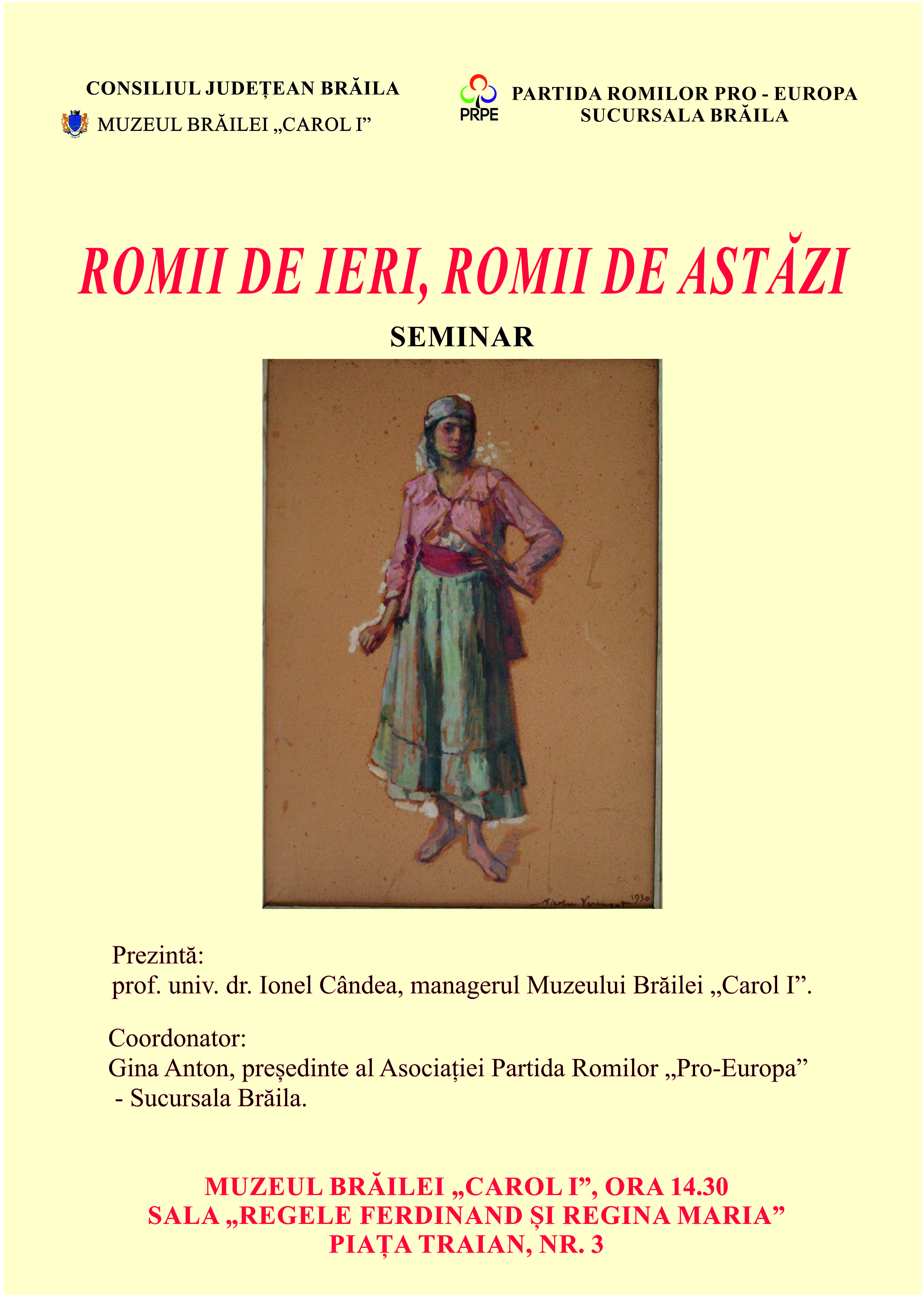 Muzeul Brăilei „Carol I”, în parteneriat cu Asociația Partida Romilor „Pro-Europa”, Sucursala Brăila, a organizat seminarul cu tema „Romii de ieri, romii de astăzi”. Evenimentul a avut loc miercuri, 3 octombrie 2018, ora 14.30, la sediul Muzeului Brăilei „Carol I”, în sala „Regele Ferdinand și Regina Maria” (Piața Traian, nr. 3).