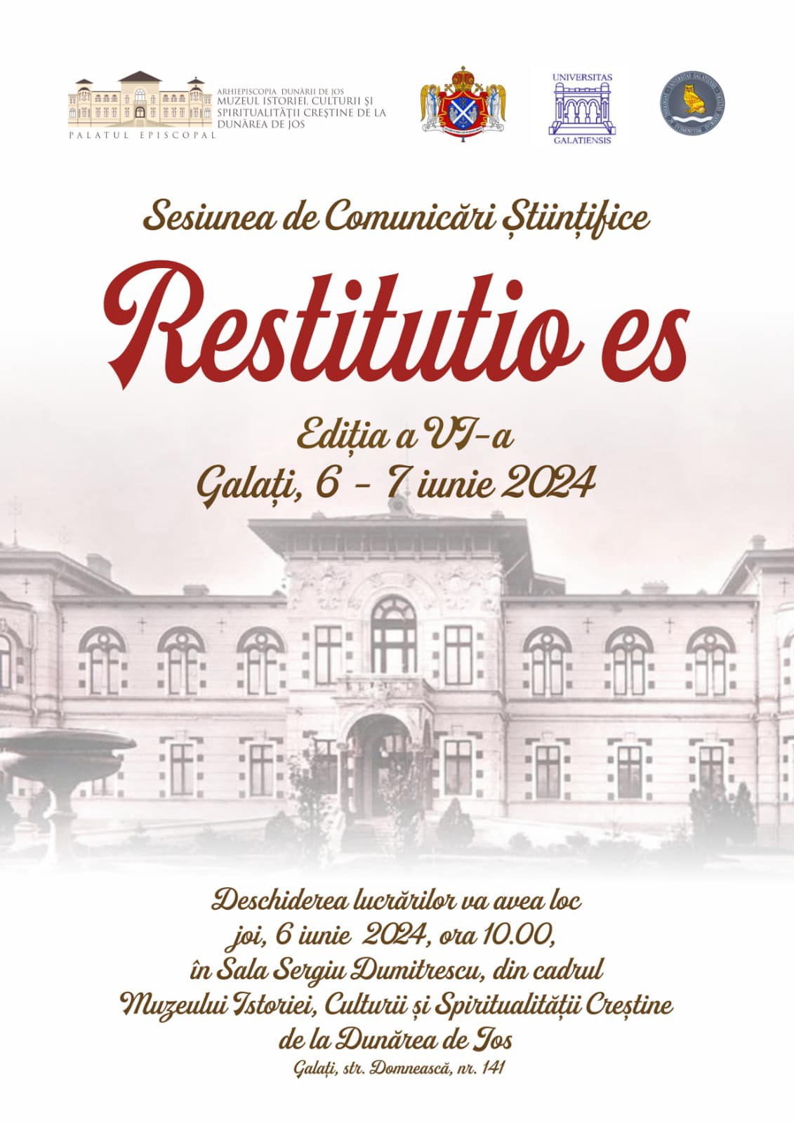 Participare la Sesiunea de Comunicări Științifice RESTITUTIO ES - ediția a VI-a, la Muzeul Istoriei, Culturii și Spiritualității Creștine de la Dunărea de Jos din Galați.