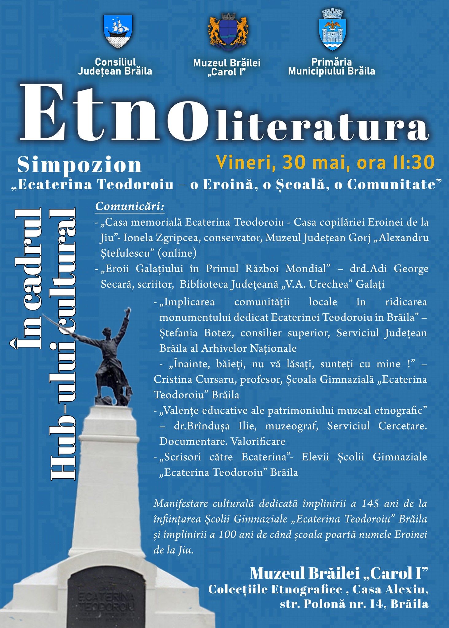 Simpozion cu tema „Ecaterina Teodoroiu – o Eroină, o Școală, o Comunitate” - în cadrul Hub-ului cultural „Etnoliteratura”, la Muzeul Brăilei „Carol I” - Casa Colecțiilor Etnografice / Casa Alexiu.