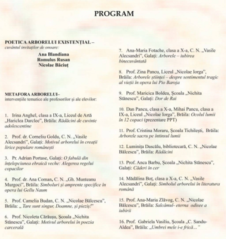 Simpozion cu tema „METAFORA ARBORELUI ÎN LITERATURA ROMÂNĂ ȘI UNIVERSALĂ”