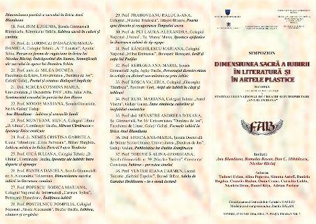 Simpozionul „DIMENSIUNEA SACRĂ A IUBIRII ÎN LITERATURĂ ȘI ÎN ARTELE PLASTICE”, în cadrul celei de a cincea ediții a Festivalului Național de Creație și Interpretare „Ana Blandiana” - la sediul Muzeului Brăilei „Carol I”