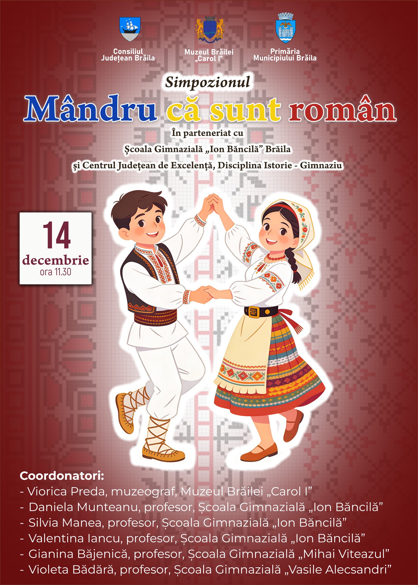 Muzeul Brăilei „Carol l” în parteneriat cu Școala Gimnazială „Ion Băncilă” Brăila și Centrul Județean de Excelență Brăila au organizat duminica,14 decembrie 2025, ora 11.30, simpozionul „Mândru că sunt roman”, o activitate despre identitatea și valorile naționale.