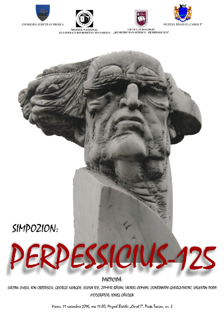 Muzeul Brăilei „Carol I” vă invită vineri, 11 noiembrie 2016, ora 11.00, în sala de conferințe din Piața Traian nr. 3, la simpozionul „Perpessicius – 125”, eveniment dedicat împlinirii a 125 de ani de la nașterea cărturarului brăilean, organizat împreună cu Muzeul Național al Literaturii Române București.