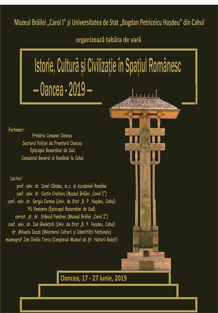 Muzeul Brăilei „Carol I”, în colaborare cu Universitatea de Stat „Bogdan Petriceicu Hașdeu” din Cahul, Republica Moldova, organizează în perioada 17 – 27 iunie 2019, o tabără de vară, în localitatea Oancea.