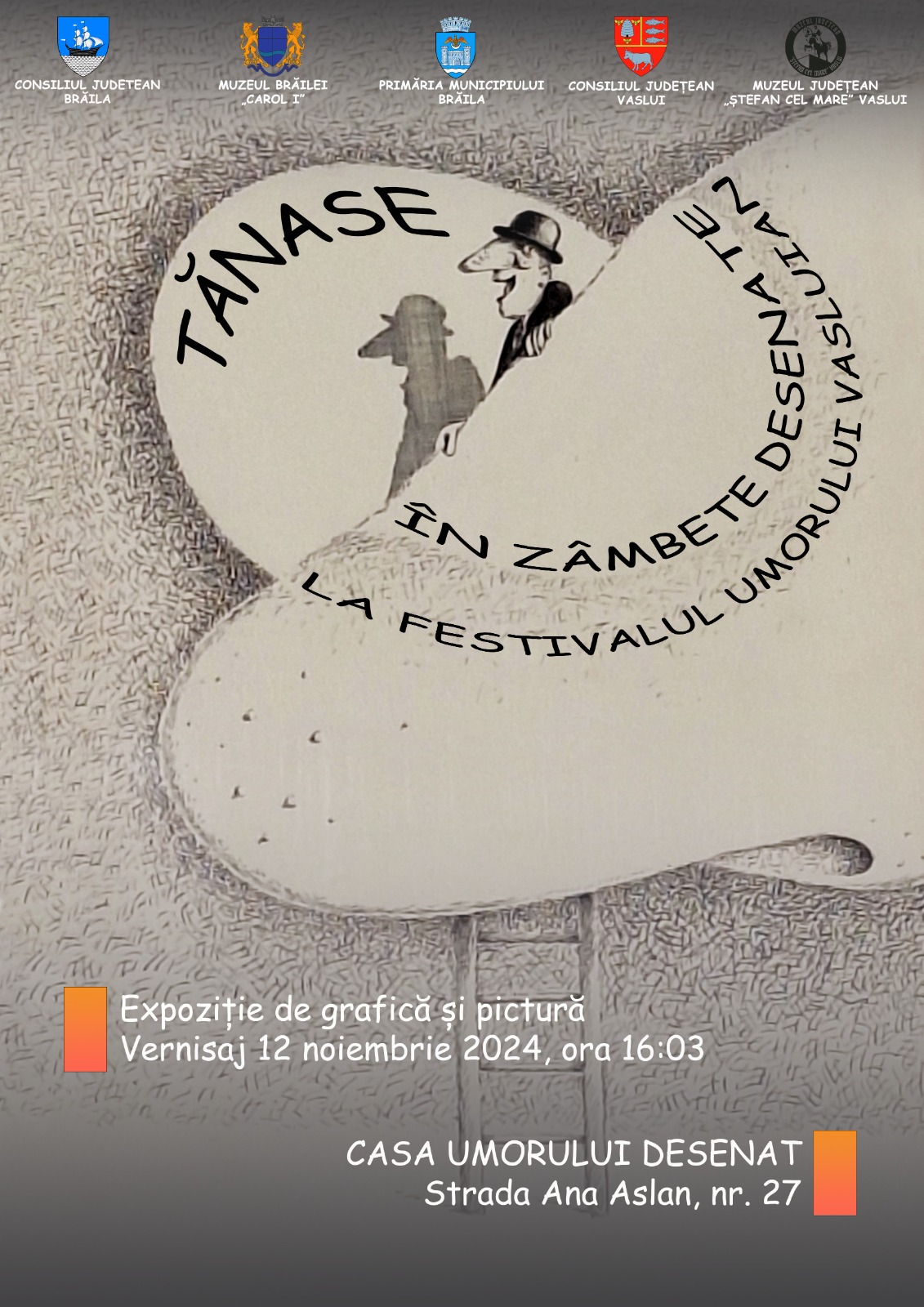 „Tănase în zâmbete desenate la Festivalul Umorului Vasluian”. Expoziție de grafică și pictură - Vernisaj 12 noiembrie 2024, ora 16.03, la Muzeul Brăilei „Carol I” - Casa Umorului Desenat (str. Ana Aslan, nr. 27)