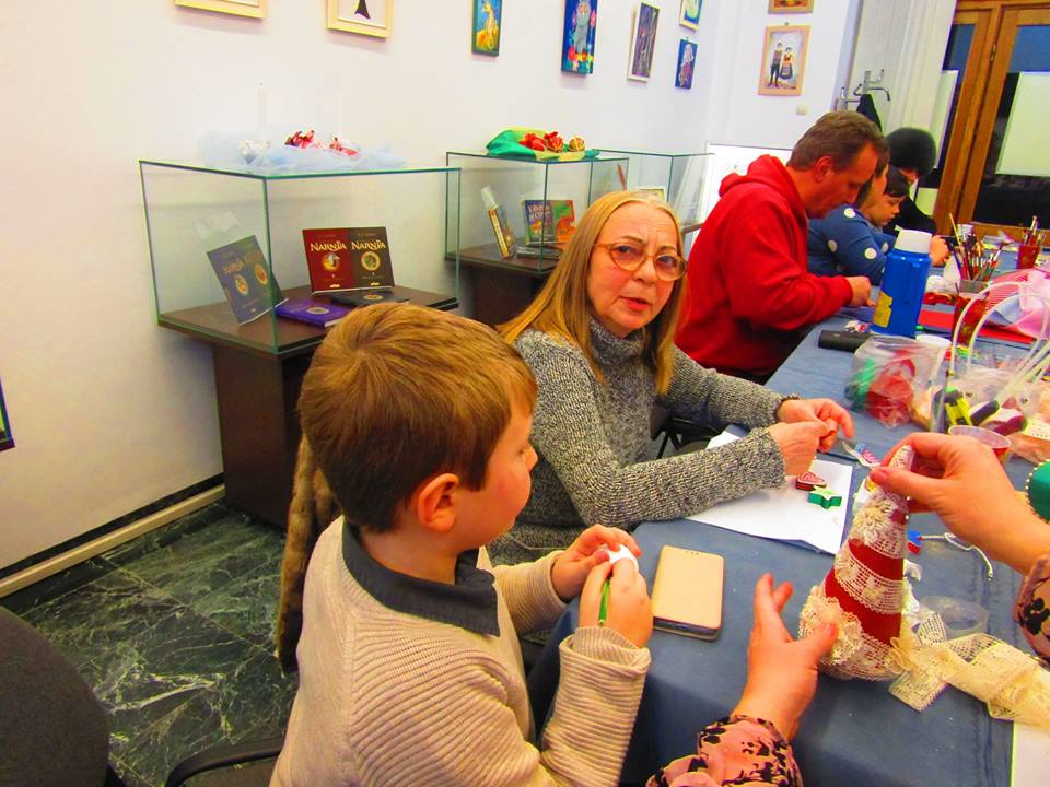 Activitatea a inclus Atelier de confecţionat globuri pentru bradul de Crăciun (II). Coordonator: prof. Elena Salomeea Kaloxilos, artist plastic | Poveşti despre sărbătorile de iarnă şi colinde. A prezentat: prof. Irini Stalika | Vizită în expoziţia temporară „Întâlnire cu... Sara” − pictură, semne de carte, ornamente, cărţi. Au participat adulţi, tineri şi copii.