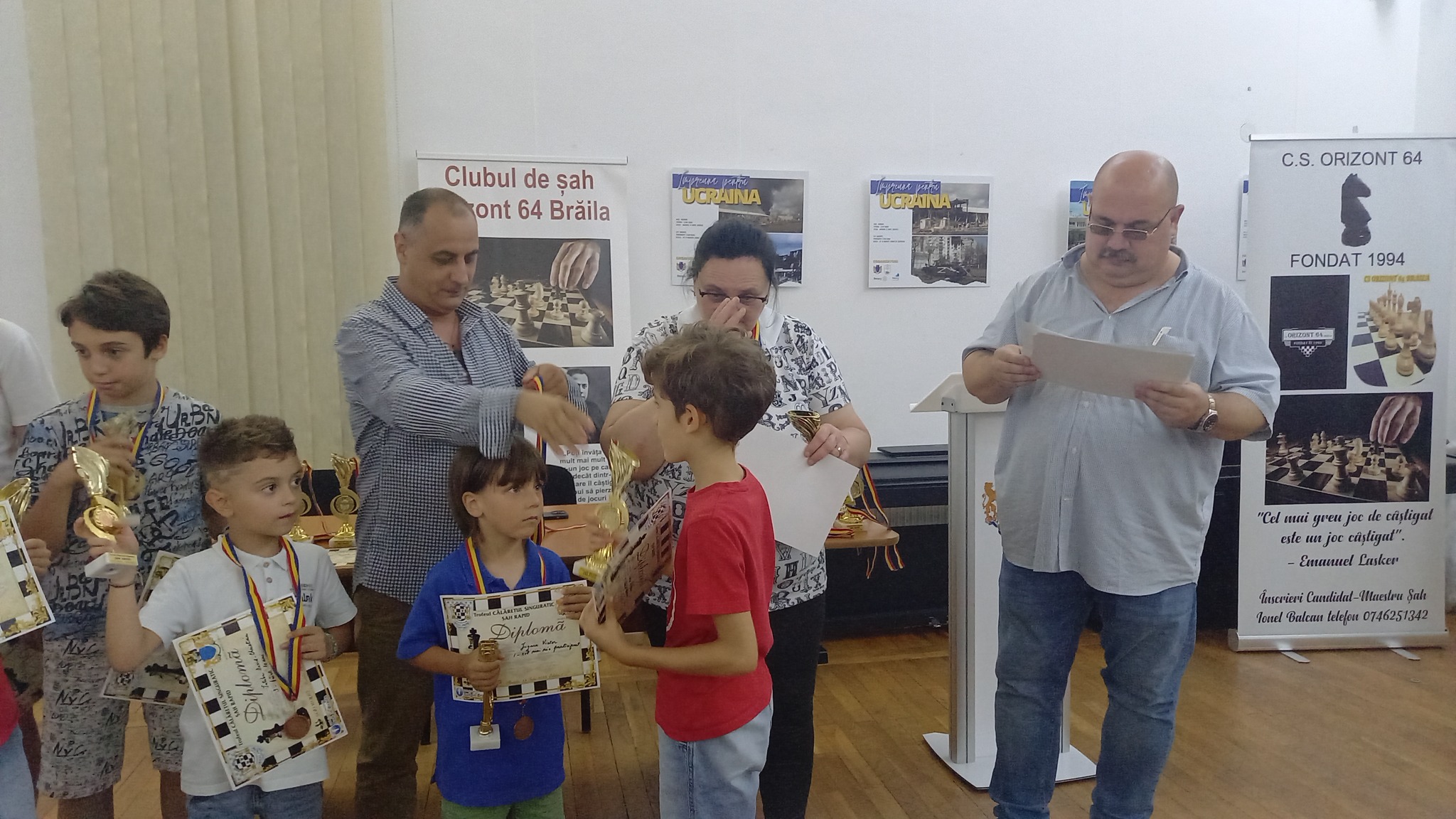 Alocuțiuni: Iulian Preda, președintele Clubului Sportiv de Șah „Micul Prinț” Brăila și Ionel Balcan, vicepreședintele Clubului Sportiv de Șah „Orizont 64” Brăila.
