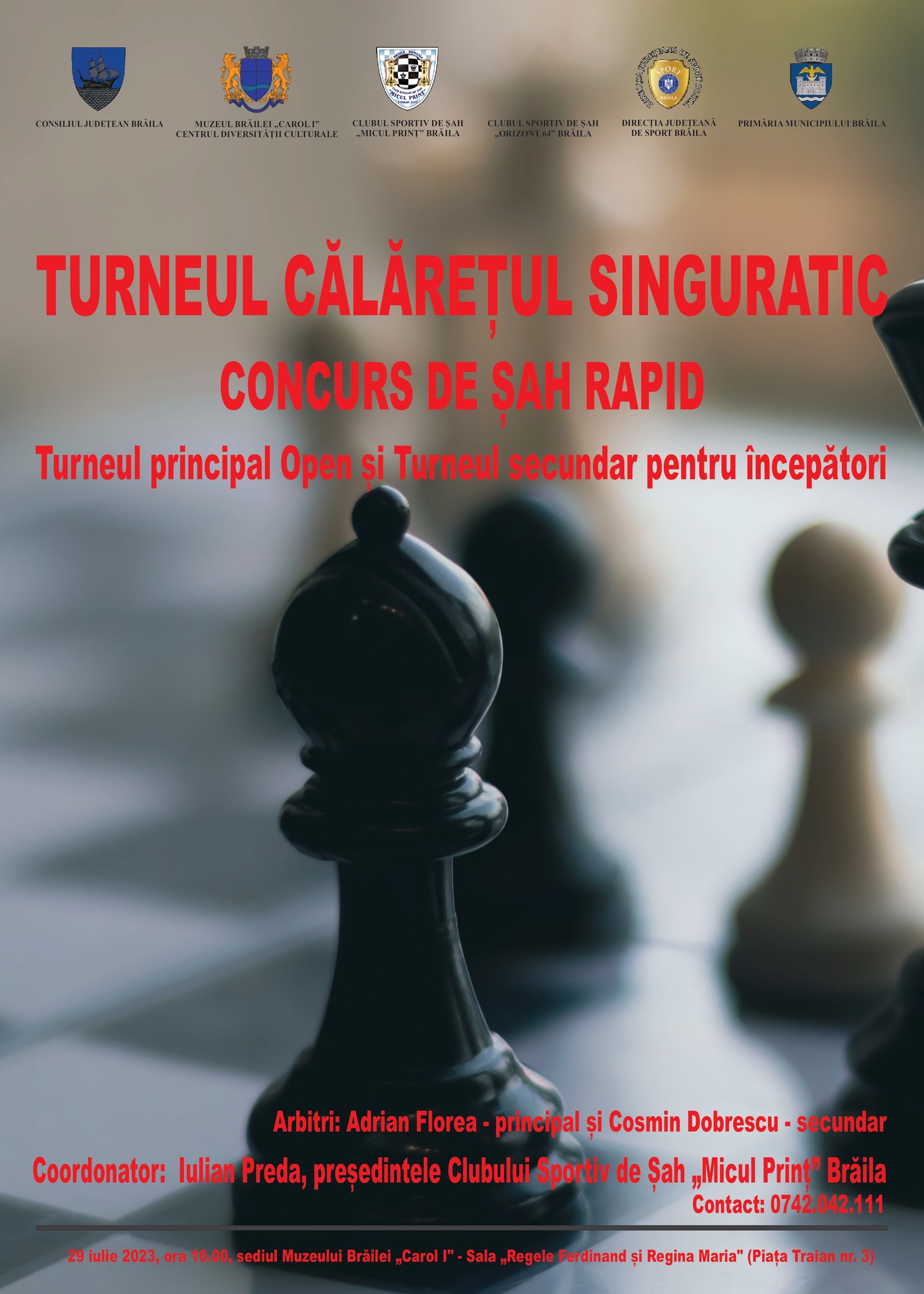 Turneul „CĂLĂREȚUL SINGURATIC”, Concurs de șah rapid, la sediul Muzeului Brăilei „Carol I”, sala „Regele Ferdinand și Regina Maria” și Centrul Diversității Culturale