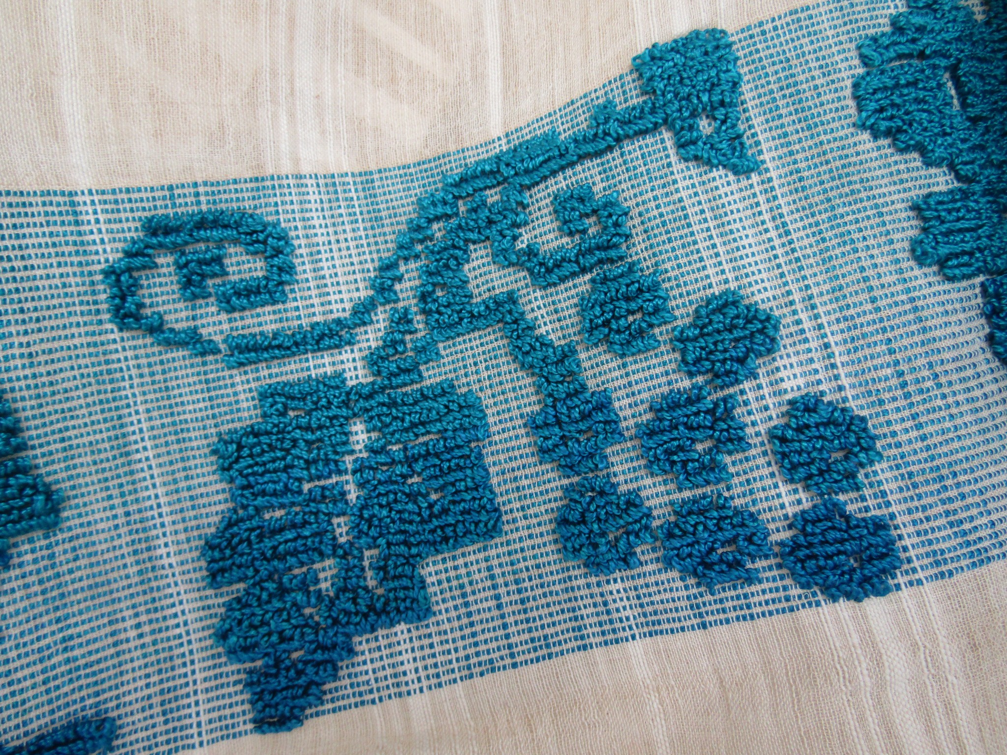 - Ștergar lucrat de Floarea Datcu din Tichilești, dăruit muzeului de prof. Tudora Vâlsănoiu (Ploiești);