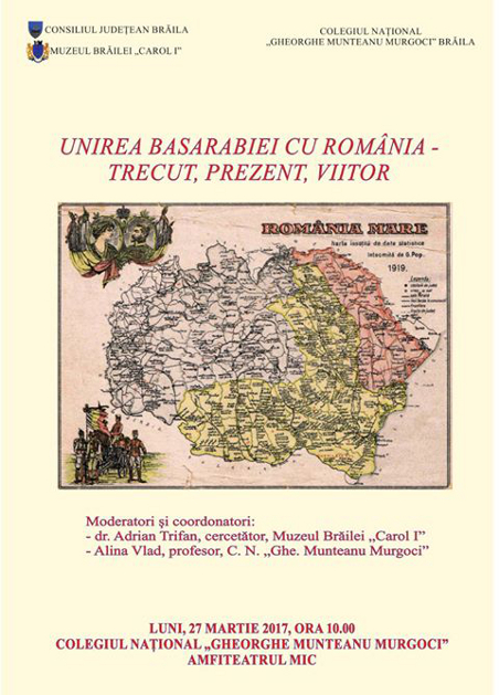 „UNIREA BASARABIEI CU ROMÂNIA – TRECUT, PREZENT, VIITOR", la Colegiul Naţional „Gheorghe Munteanu Murgoci” Brăila, Amfiteatrul Mic