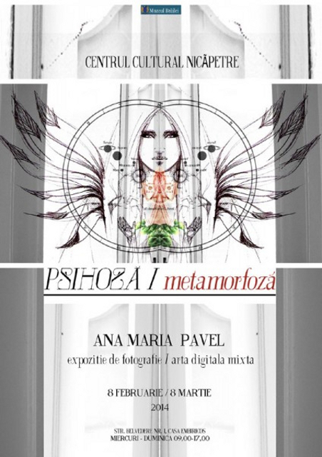 Muzeul Brăilei - Centrul Cultural Nicăpetre vă invită sâmbătă, 8 februarie 2014, ora 11.00, la vernisajul expoziţiei de fotografie şi artă digitală mixtă „Psihoză/Metamorfoză“, semnată Ana Maria Giorgiana Pavel.