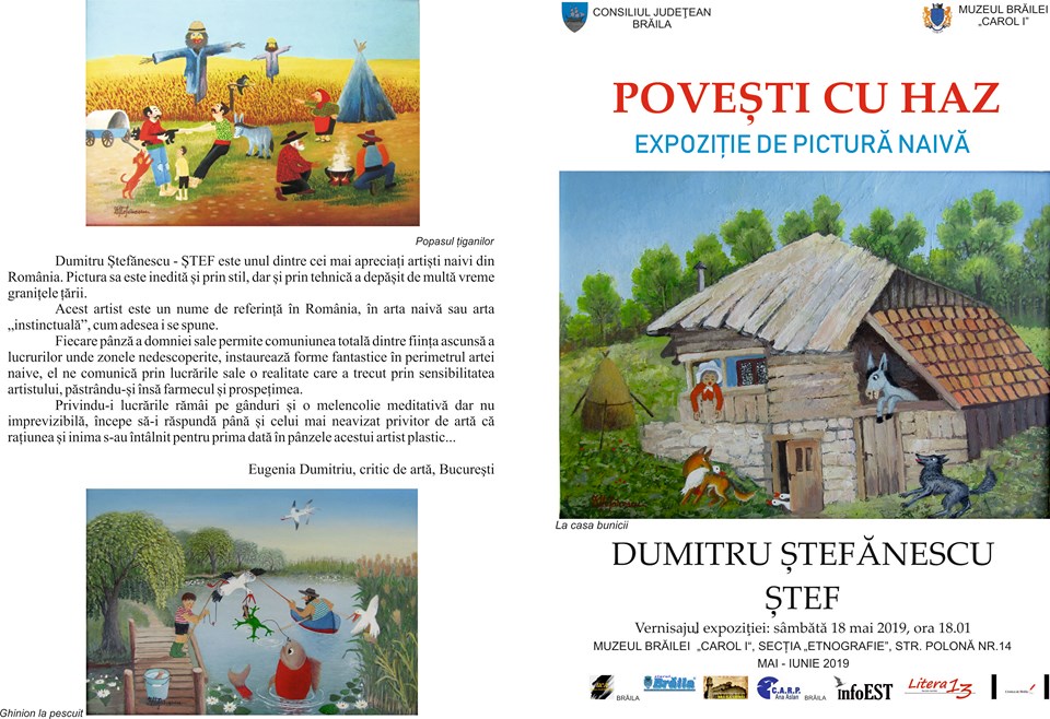 „NOAPTEA MUZEELOR". Vernisajul expoziţiei temporare „POVEŞTI CU HAZ”, pictură naivă semnată Dumitru Ştefănescu Ştef, la Muzeul Brăilei „Carol I" - Secţia Etnografie