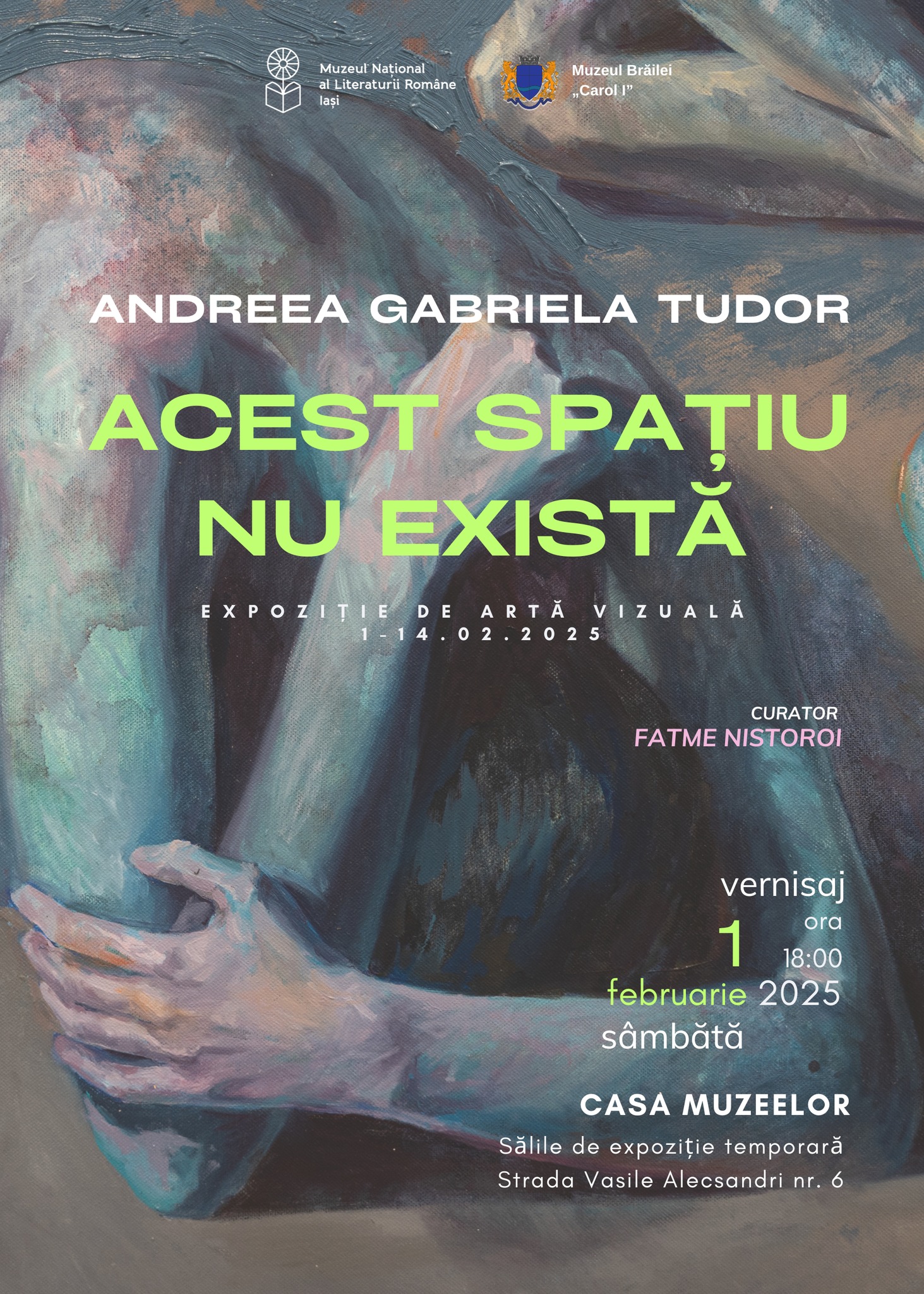 Avem plăcerea de a vă invita sâmbătă, 1 februarie 2025, începând cu ora 18:00, la vernisajul expoziției de artă vizuală „Acest spațiu nu există” a artistei Andreea Gabriela Tudor.