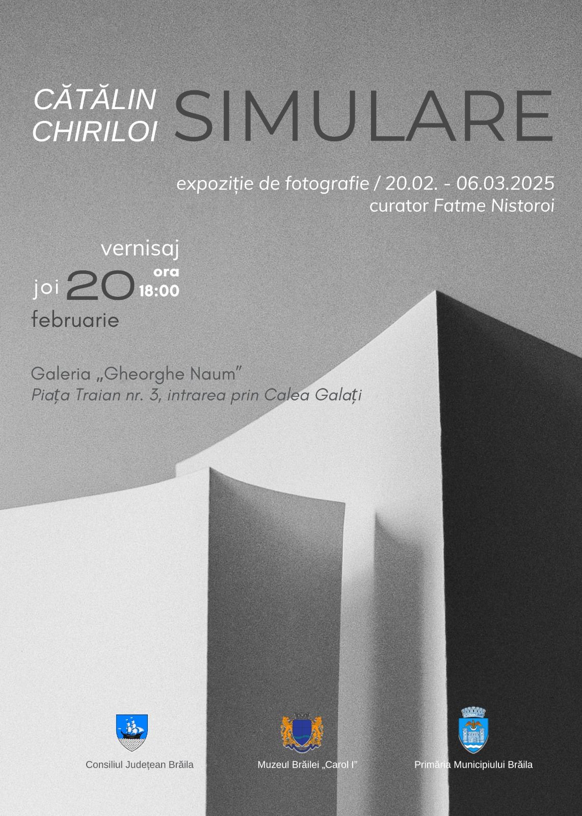 Muzeul Brăilei „Carol I” are plăcerea să vă invite joi, 20 februarie, începând cu ora 18:00, la vernisajul expoziției de fotografie conceptuală „Simulare” a artistului Cătălin Chiriloi.