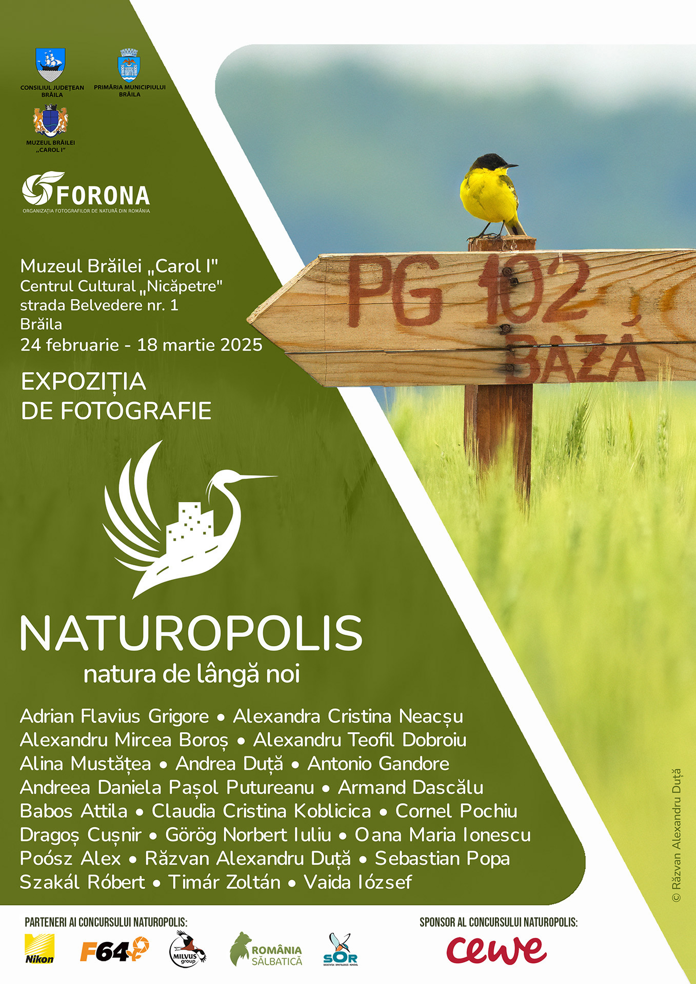 Expoziția își propune să prezinte frumusețea naturii conexă mediului urban și va fi deschisă publicului la Centrul Cultural „Nicăpetre”, strada Belvedere nr. 1, Brăila, în perioada 24 februarie - 18 martie 2025.