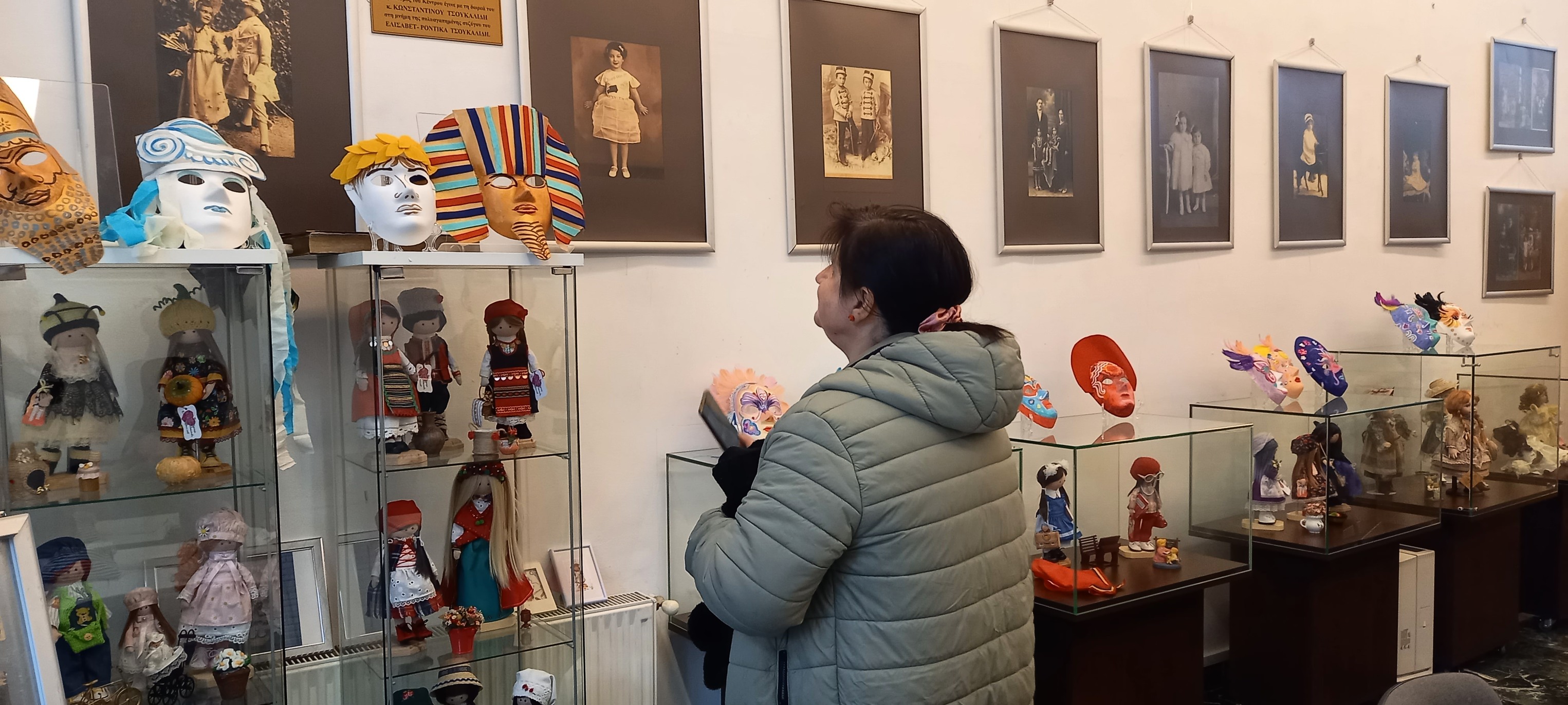 Camelia Hristian, șef Serviciul Relații cu Publicul a prezentat expozițiile temporare „Colecții și colecționari”. Păpuși de porțelan din colecția Viorica Roman (București) | Păpuși de autor realizate de Viorica Roman (București) | Fotografii de epocă de la Asociația Muzeul Jucăriilor București din colecția ing. Cristian Dumitru și Mihail Dumitru | „Brăila în cărți poștale” din colecția Florentina Cristina Mușat (Comunitatea Elenă Brăila) | „Ziua Limbii Elene”. Documente și cărți din sec. XIX - începutul sec. XX de la Comunitatea Elenă Brăila și de la familiile Beatrice Dobrescu Ispir și Florentina Cristina Mușat (Comunitatea Elenă Brăila) | „Măști de carnaval” / Αποκριάτικες μάσκε - realizate în cadrul Cercului de Pictură al Comunității Elene Brăila, coordonat de prof. Elena Salomeea Kaloxilos Moraru, artist plastic | „Mărțișoare din perioada 1960 - 1980” din colecția Florentina Cristina Mușat (Comunitatea Elenă Brăila) / Μαρτιά.