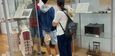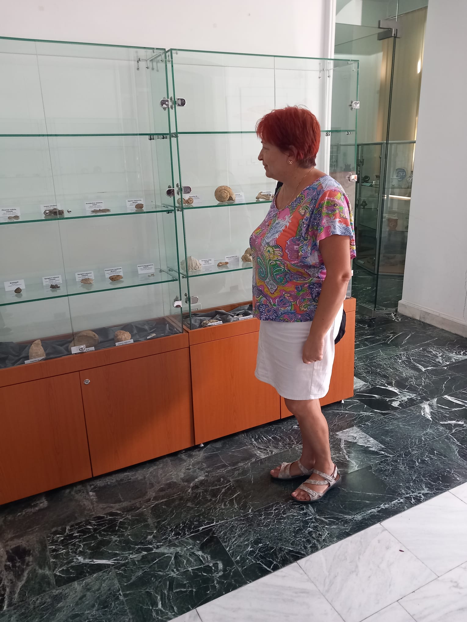Vizitatoare în expoziția temporară „Memoria Pământului” – cu piese de paleontologie și mineralogie din colecția Muzeului Geologic Național București, la sediul Muzeului Brăilei „Carol I”.